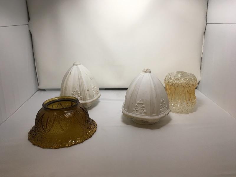 Lot 9    2 milk glass light globes from Red Door Ale House back bar and 2 additional light shades