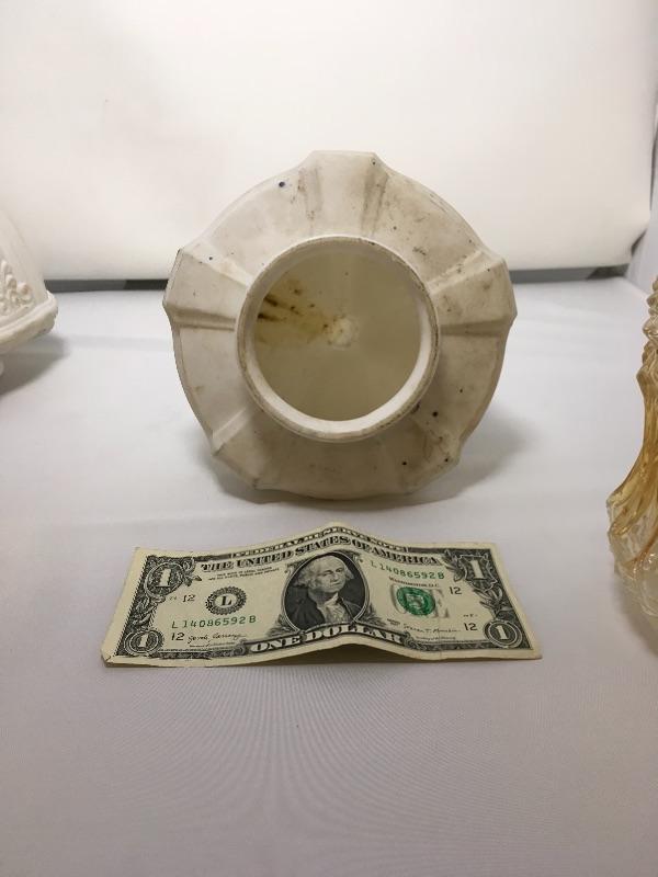 Lot 9 2 milk glass light globes from Red Door Ale House that hung on back bar portion of their bar and 2 additional light shades.