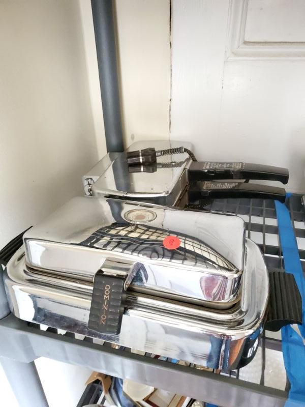 Waffle iron and a pizzelle iron. One plug for both. Untested.