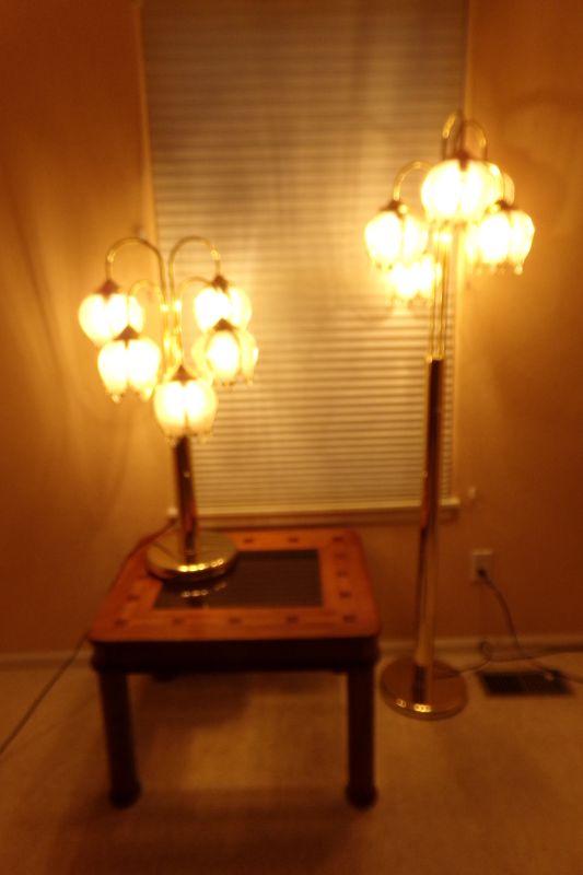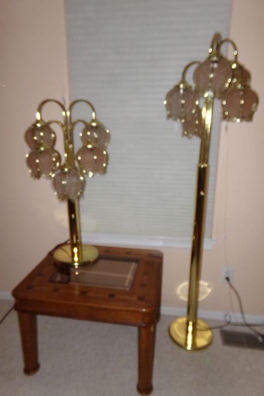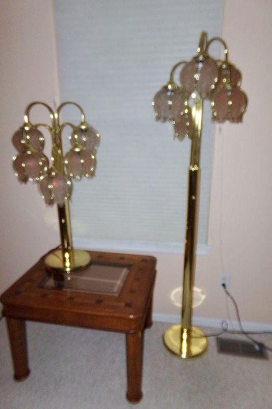 2 TULIP SHAPED LAMPS. FLOOR LAMP 66" TALL AND A TABLE LAMP.
