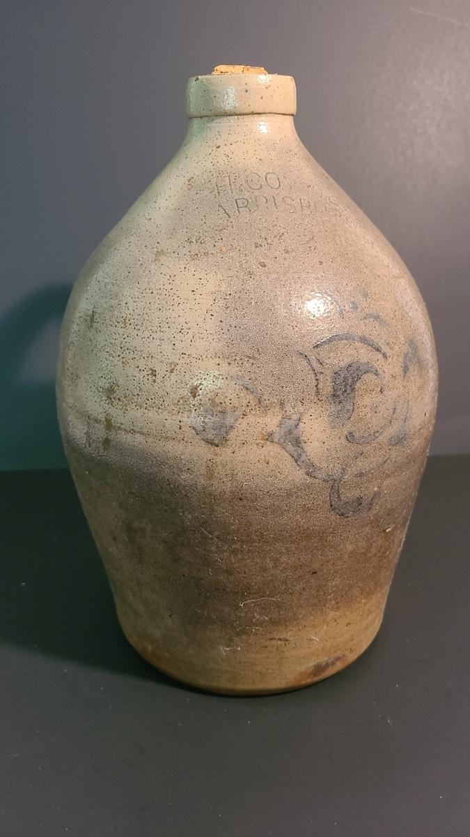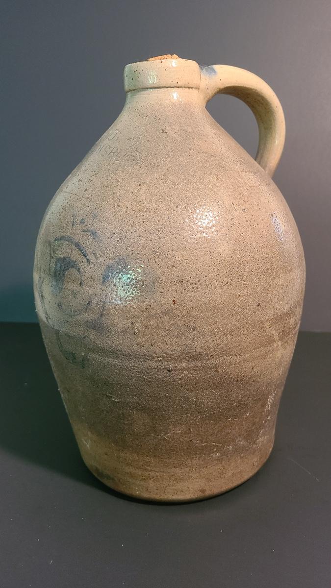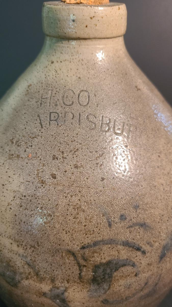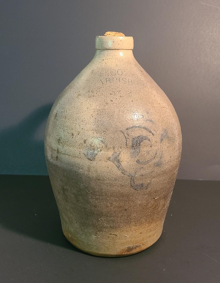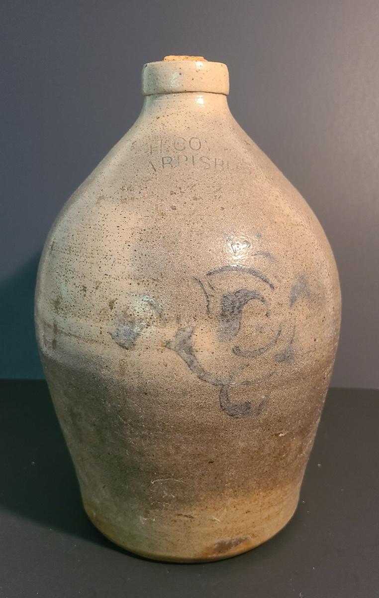 Lot 98: F.H. Cowden, Harrisburg Pa. Primitive Stenciled Cobalt Decorated Stoneware Jug