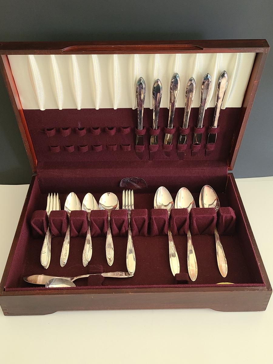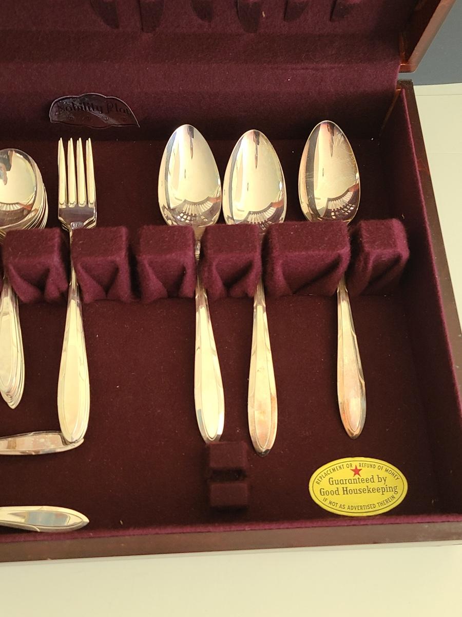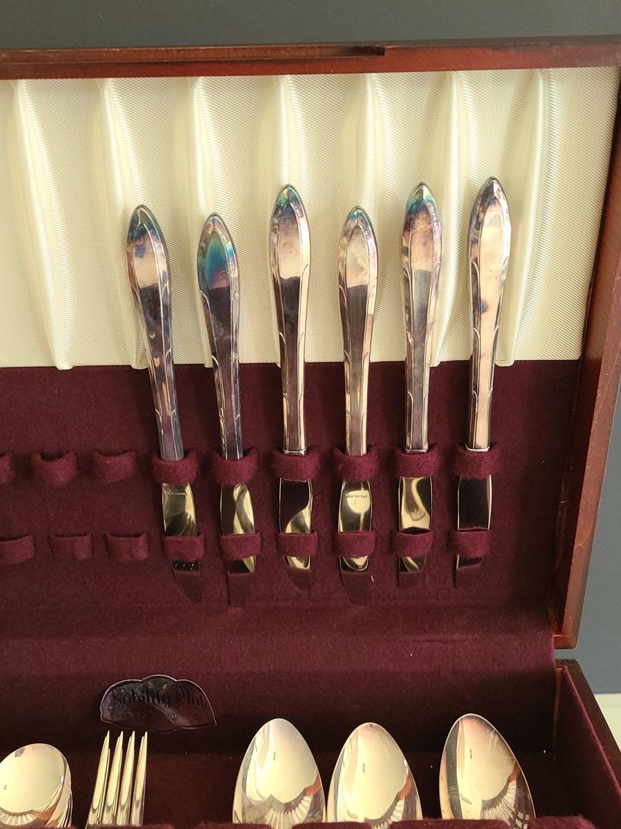 This boxed set of "Nobility Plate" has enough for a place setting for four with extras. Please see all pictures for content of the lot, condition of the lot, and measurements if taken. Pictures are the best representation of the items listed and items are untested unless indicated in description. Thank you for looking and have fun bidding![