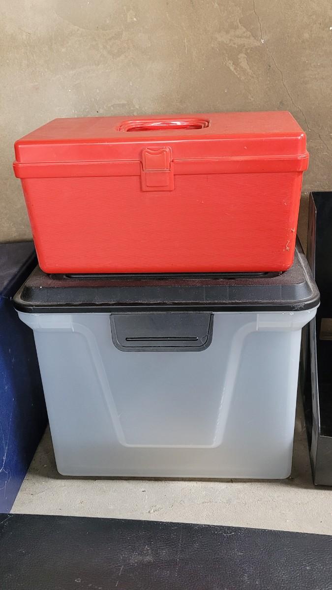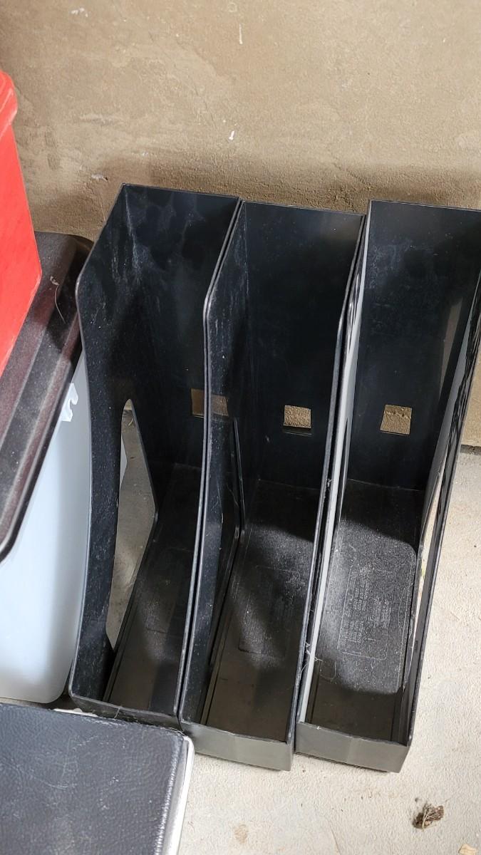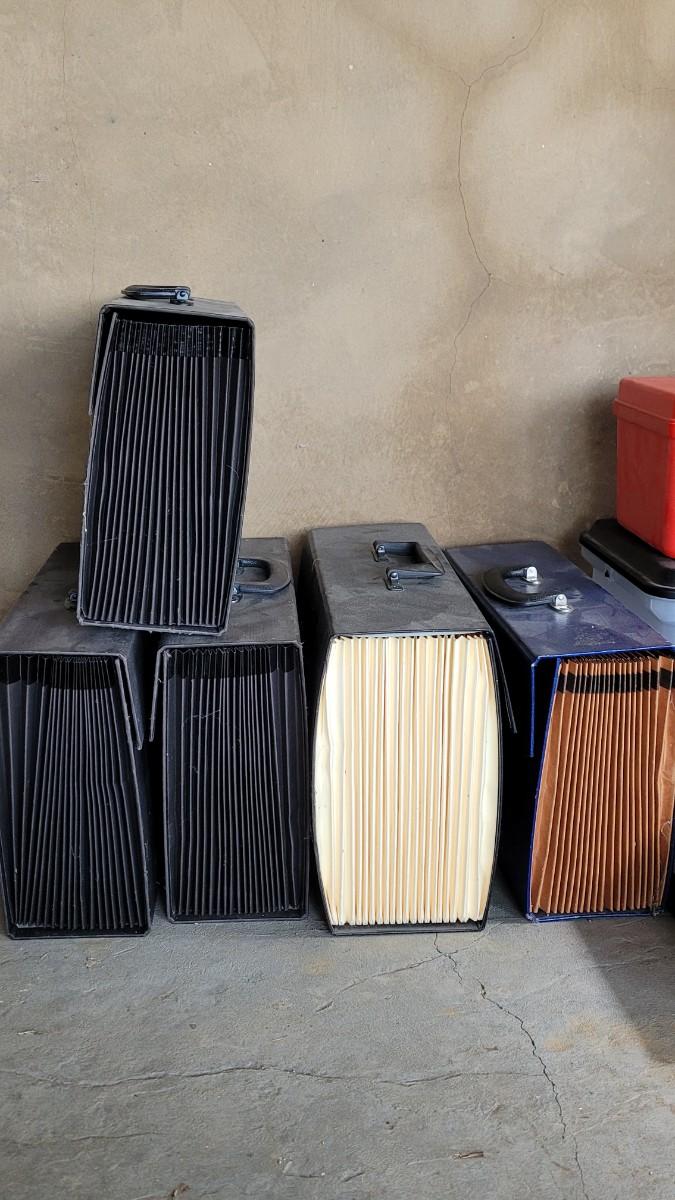 Lot 9: Accordian File Boxes, Plastic File Box, Red Organizer Box,  Magazine Holders and a Vintage Briefcase