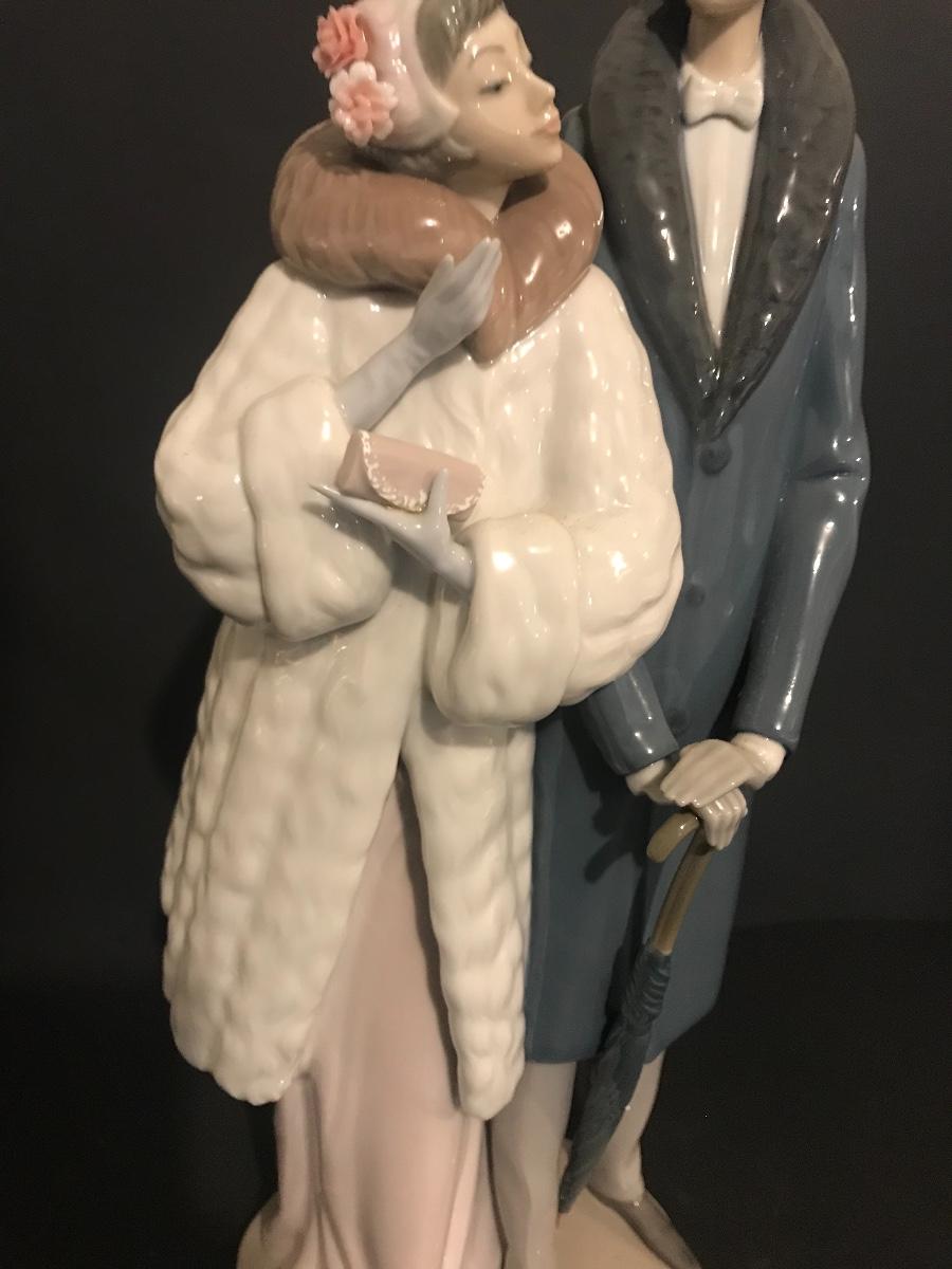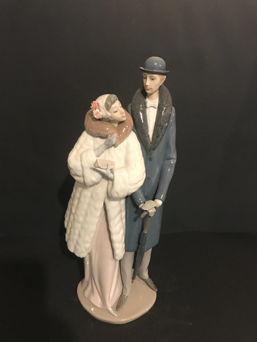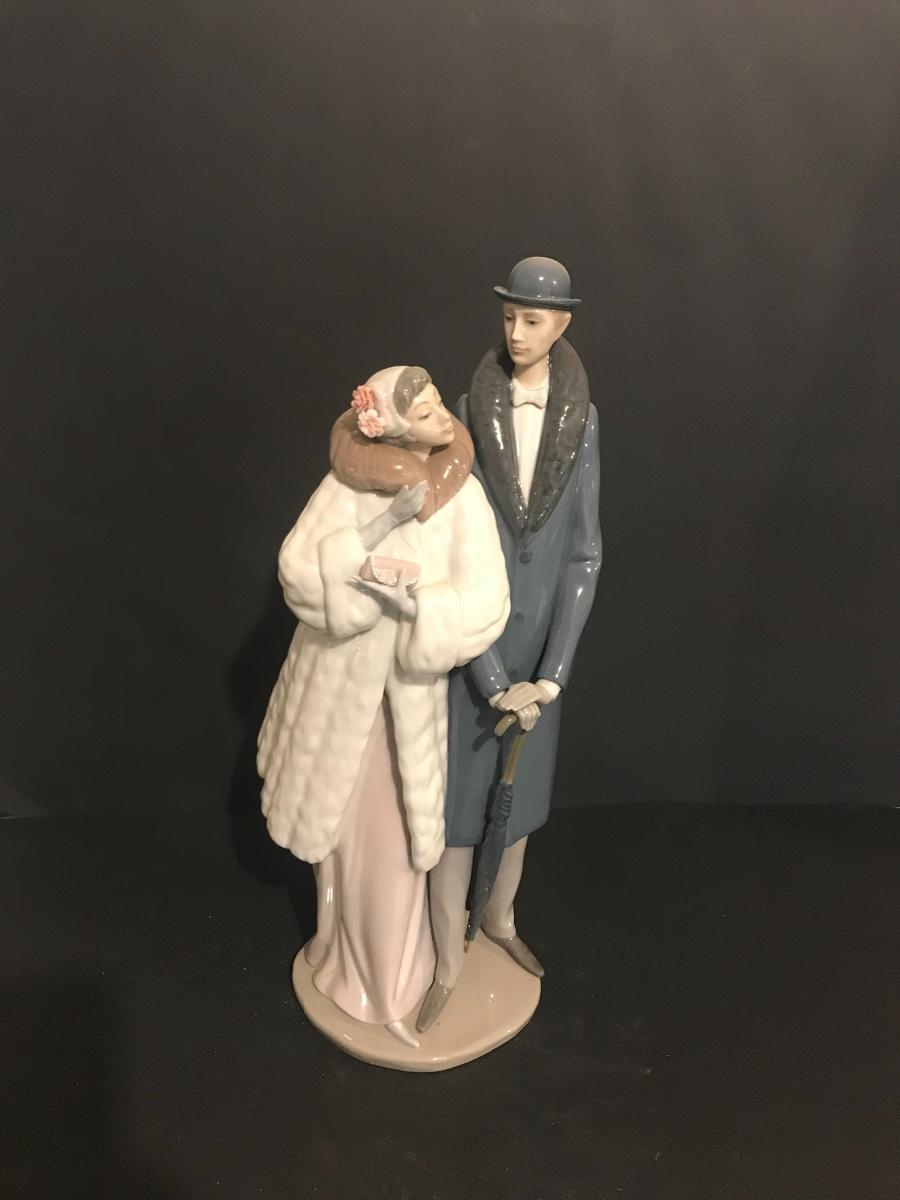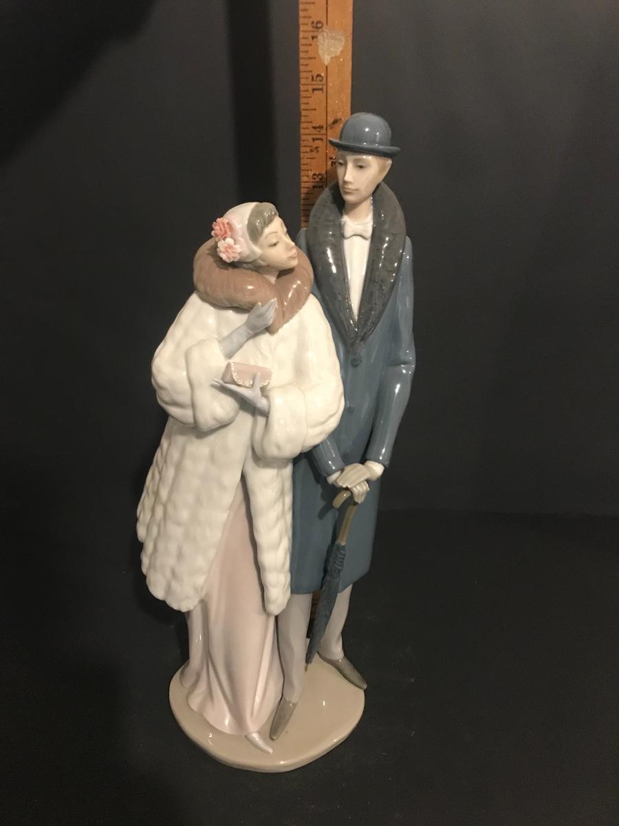 On The Town #1452 Lladro. All Lladros are in excellent vintage condition without original boxes, except where noted. All items have been inspected and any damages or imperfections have been photographed and noted to the best of our knowledge and ability. It is the responsibility of the buyer to inspect all pictures, as they are the best representation of the items. The pictures show condition, measurements if taken, and what is included in the lot. Upon pickup, it is the responsibility of the buyer to inspect their items prior to leaving the premises. Once the items leave the premises, there will be no refunds or returns. Buyers are also responsible for bringing their own boxes and packing materials for their items. Thank you.