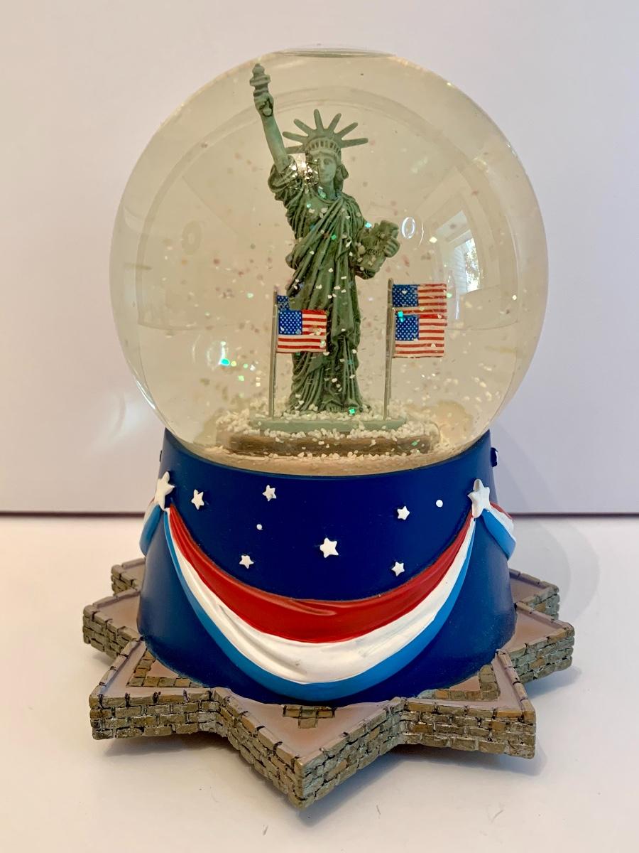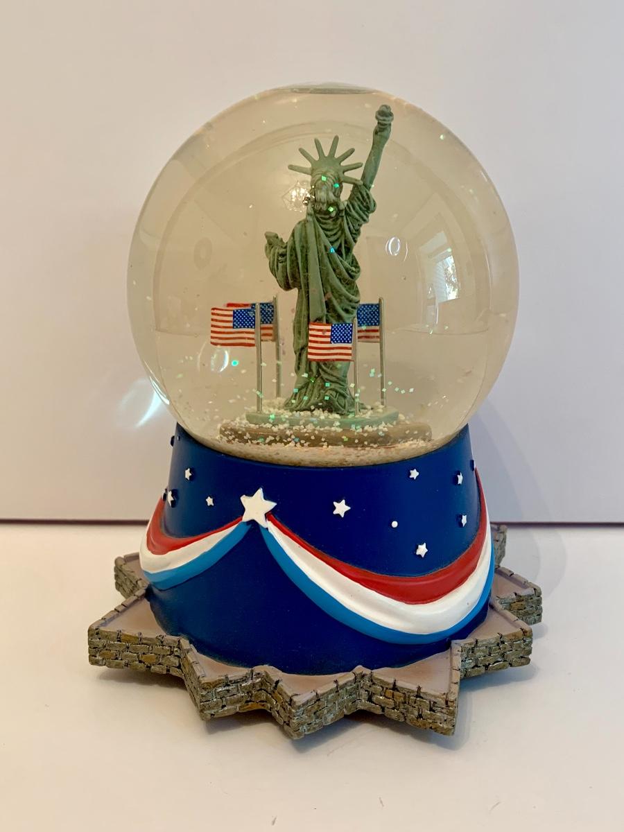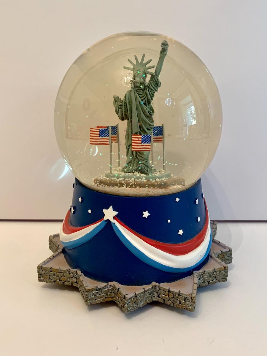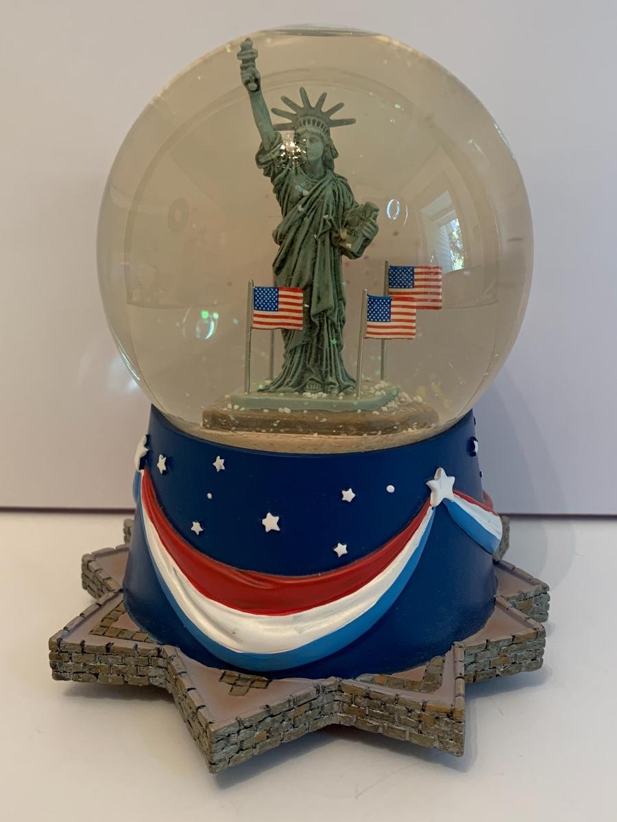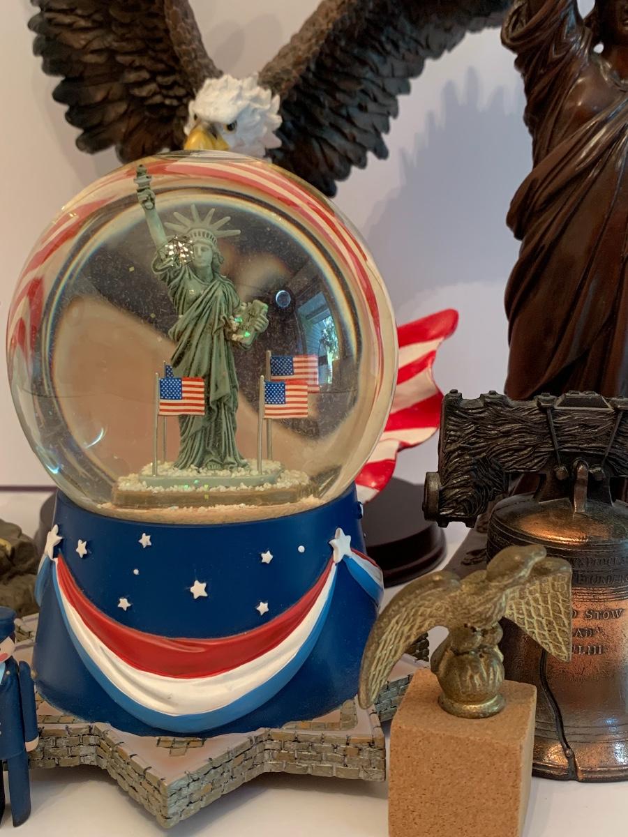 Not just for the 4th of July Patriotic Collection with eagles, Hallmark Statue of Liberty Snowglobe, approximately 11inch resin/composition Statue of Liberty, approximately 4-5 inch bronze tone Liberty Bell