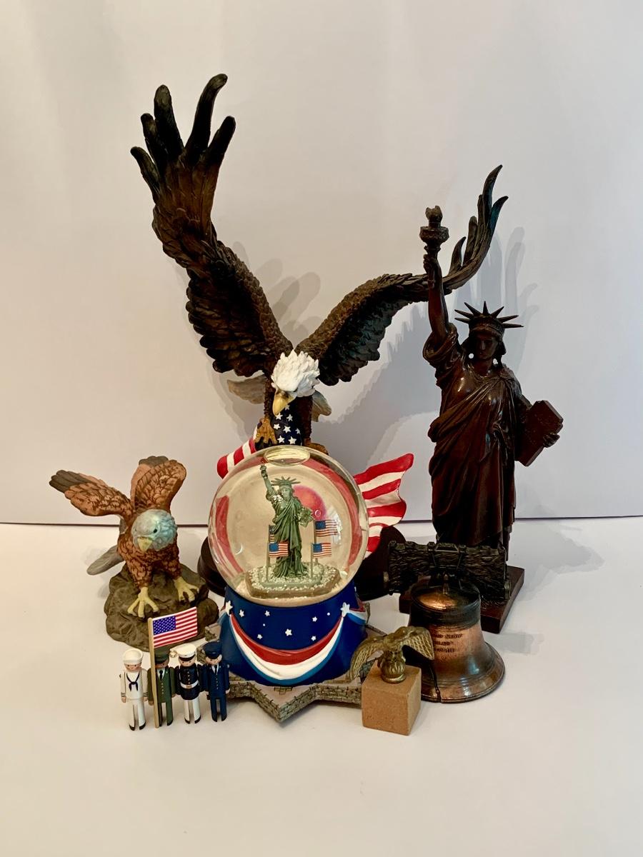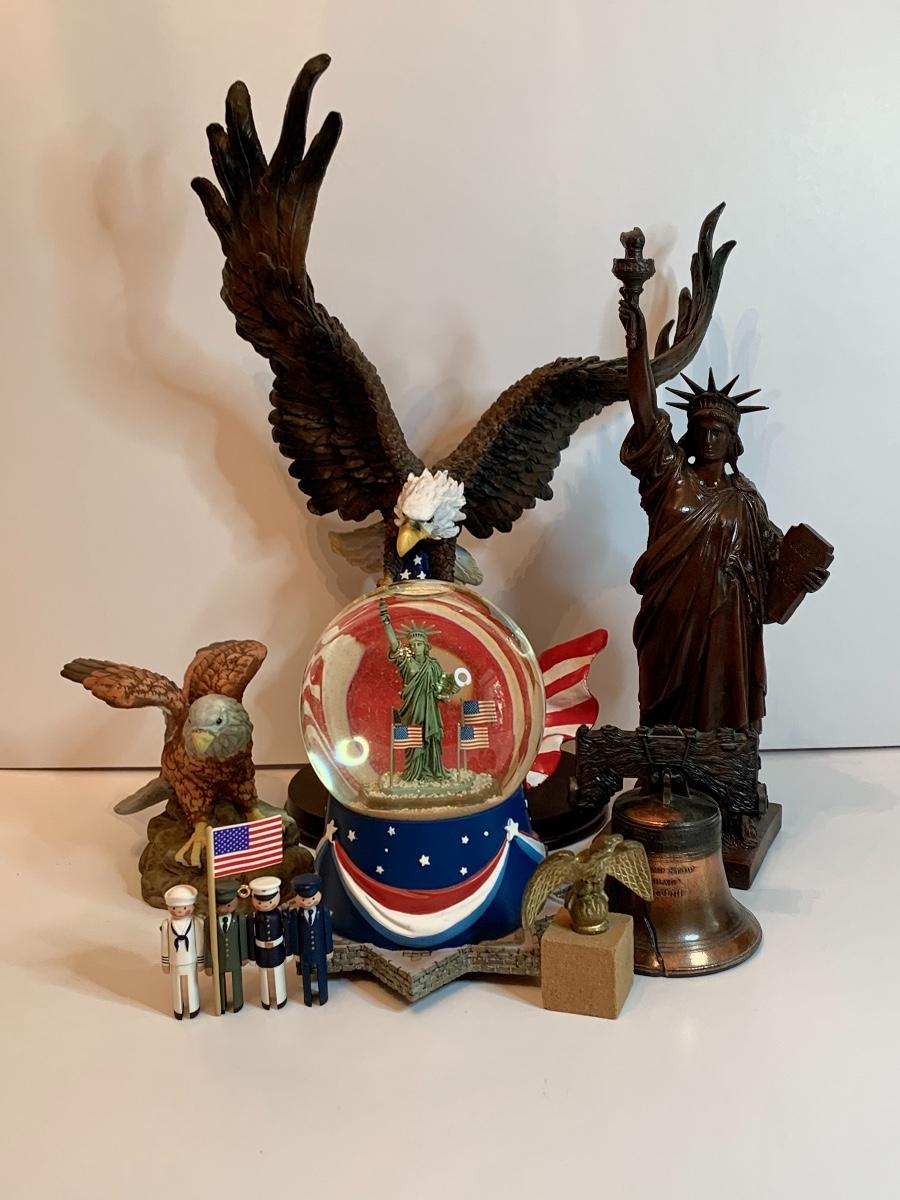 Lot 9: Patriotic Collection: Snowglobe, Eagles, Liberty Bell, Statue of Liberty