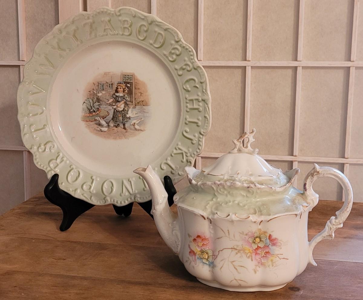 Lot 9: Antique Porcelain Small Teapot and ABC's Transfer Ware Plate