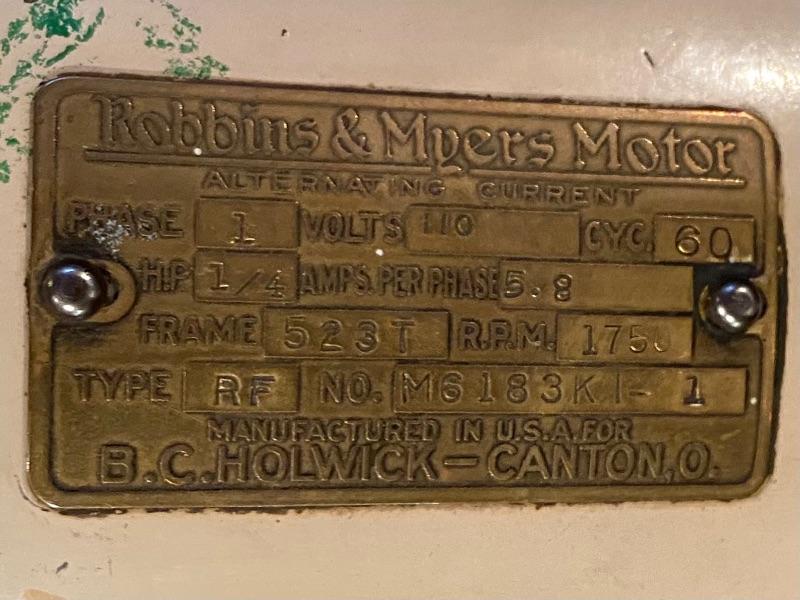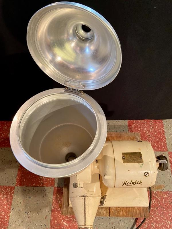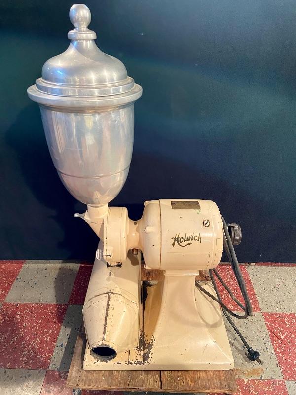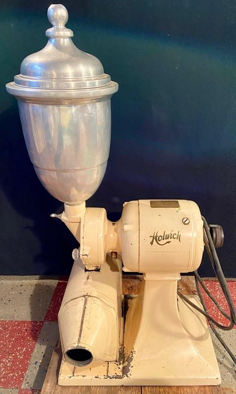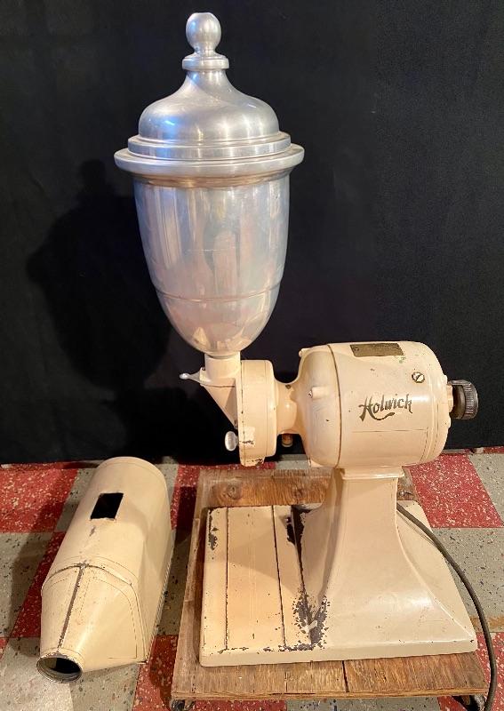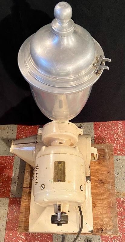 1900s Antique Holwick electric coffee mill with a Robbins and Myers Motor and hopper catch can that has small dent 17Lx16Wx34H. MHW Please see all pictures for content of the lot, condition of the lot, and measurements if taken. Pictures are the best representation of the items listed and items are untested unless indicated in description. Thank you for looking and have fun bidding!