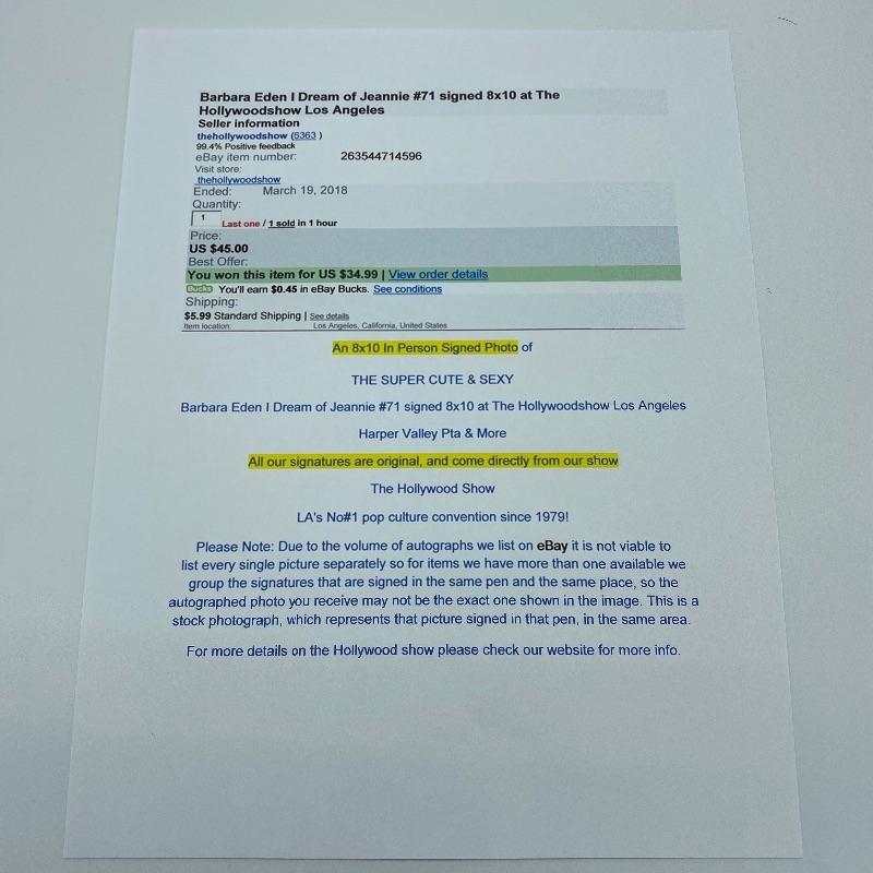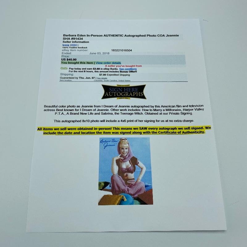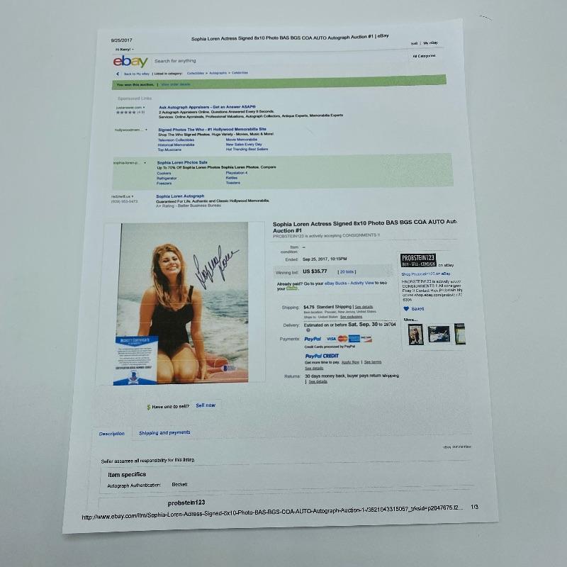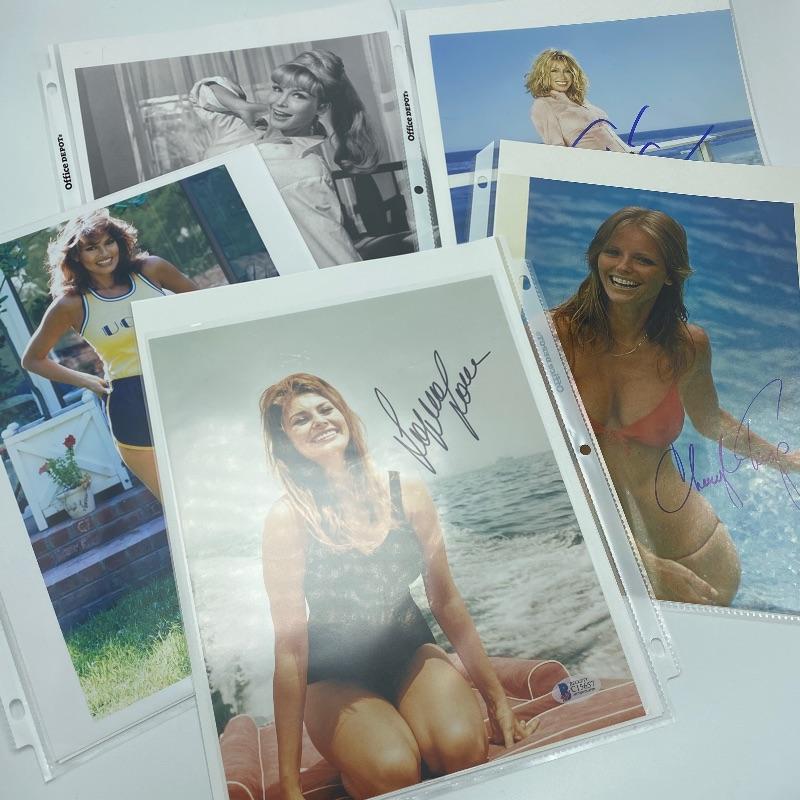 These lovely stars are recognizable to anyone who lived in the last century. Autographed photos include Raquel Welch, Sophia Loren, Cheryl Tiegs (No COA), Pat Priest(one has COA and one does not), Barbara Eden (one has COA, one does not) and Suzanne Somers. All come with a COA except those noted above. Nine photos in all.