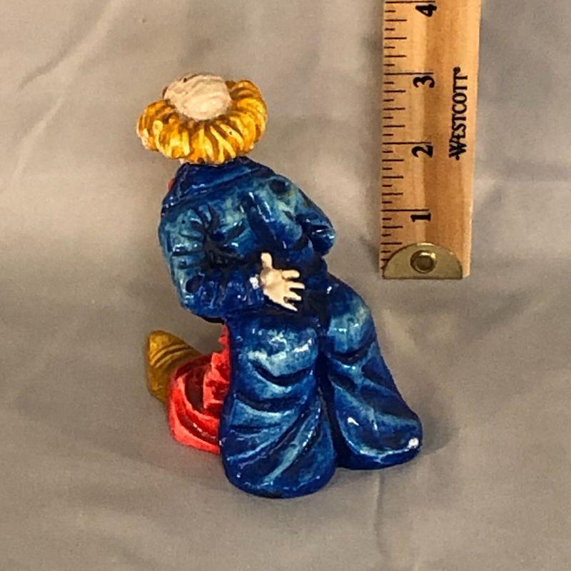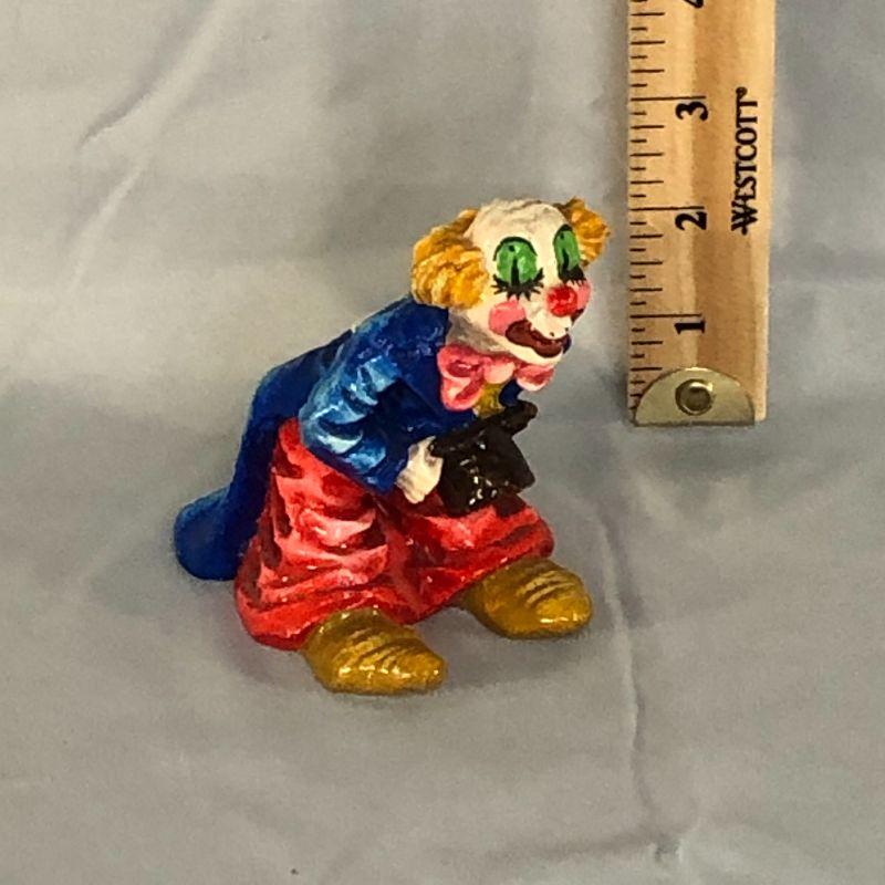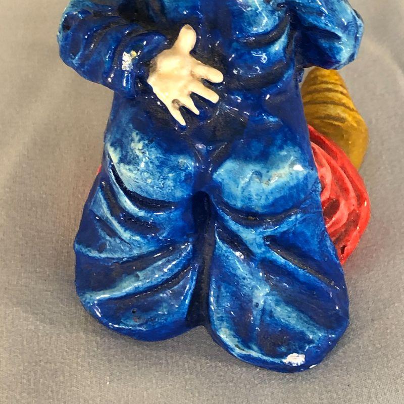 I'm not sure what this clown is made of, but he isn't made of a ceramic material. The marking on the bottom indicate he originated in Mexico. He's in very good condition and ready to make someone smile. He stands 4" tall.