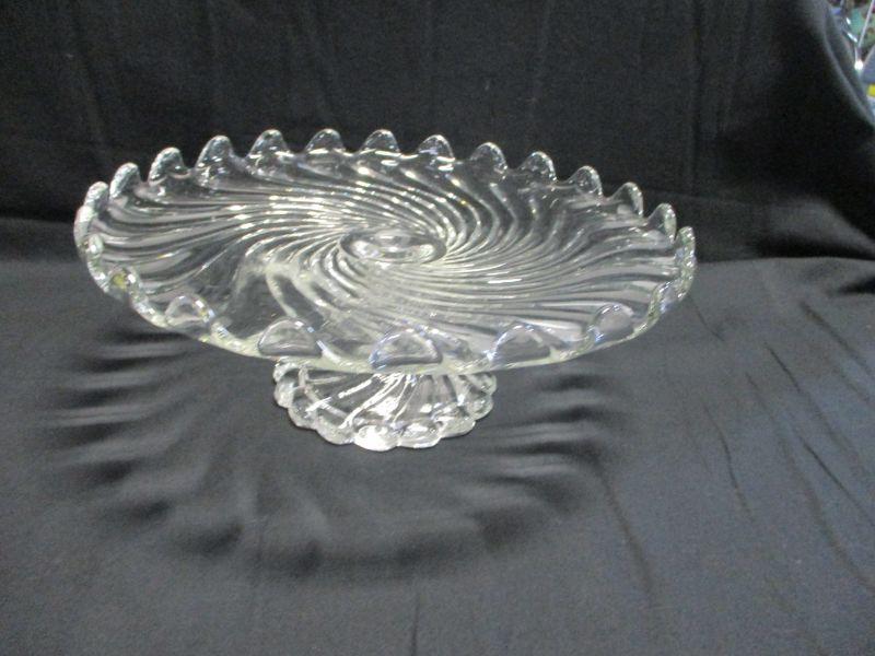 Fostoria Clear Glass Round Cake Pie Stand Pedestal Cupped Edge