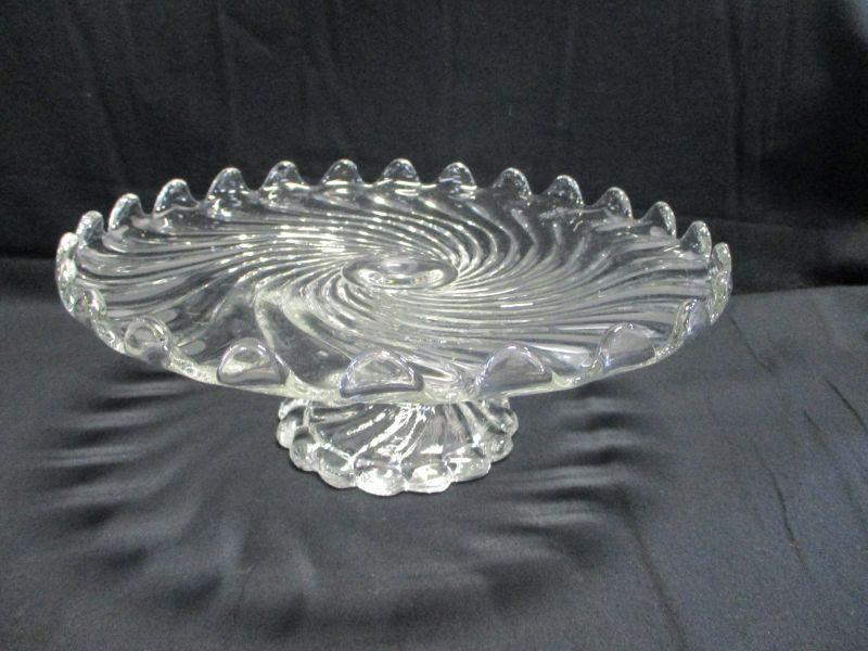 Lot 9 - Fostoria Clear Glass Round Cake Pie Stand Pedestal Cupped Edge