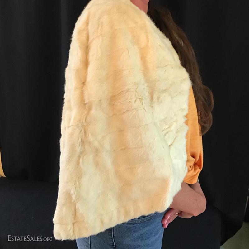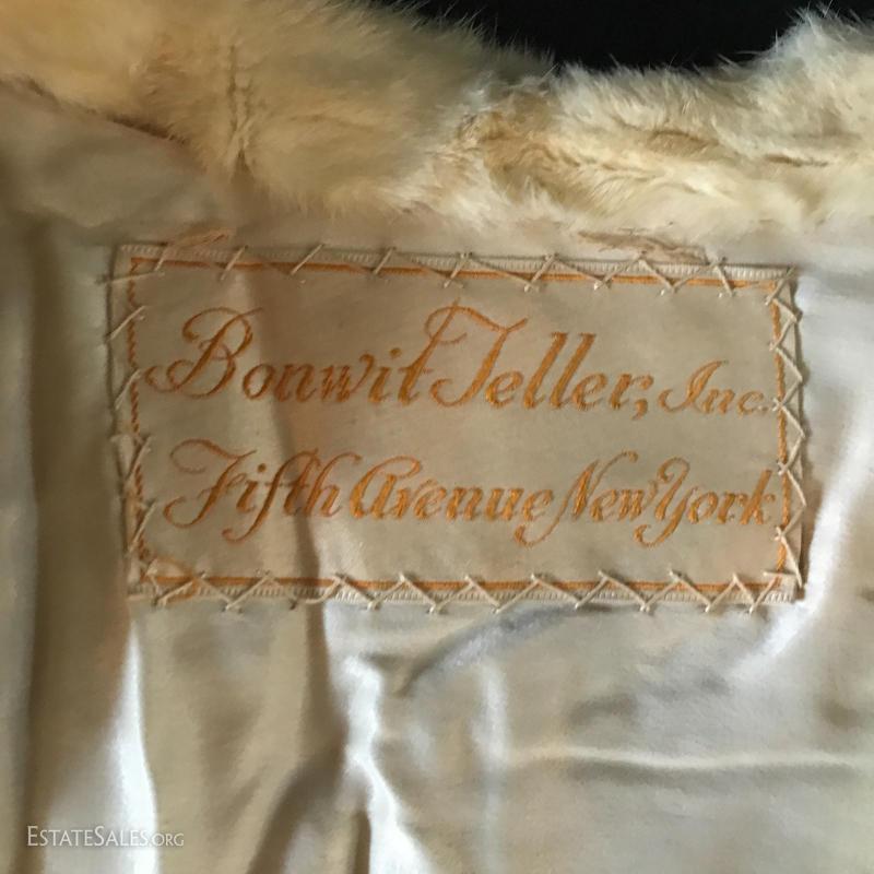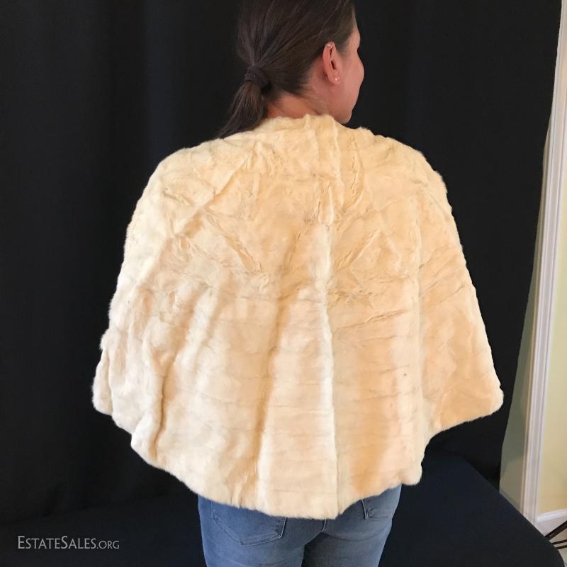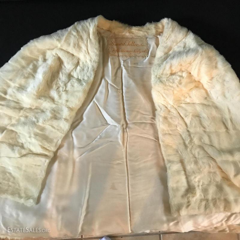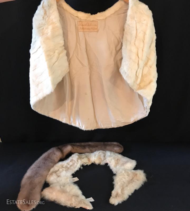 White fur shrug. Tag says "Made by Bonwit Teller Fifth Avenue New York." Sized for small or medium frame. Lot also includes two removable fur coat collars. Can not verify type of fur. Shipping available or local pick up in Flat Rock, NC.