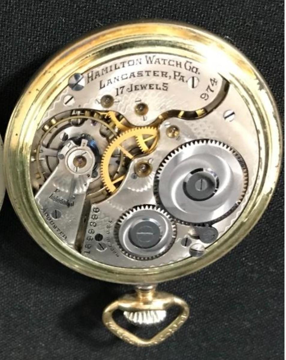 Lot 9:  ANTIQUE 16S HAMILTON GRADE 974 17 JEWEL OPEN FACE POCKET WATCH