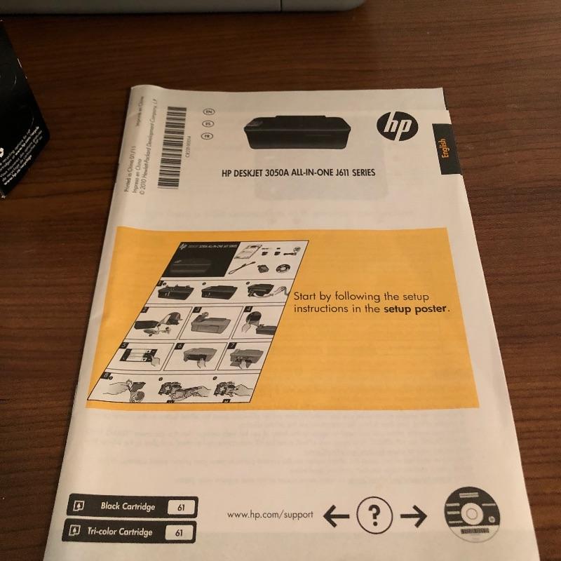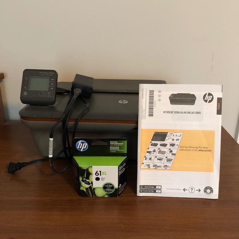 For your home office, this lot provides an HP 3050A All in One J611 color printer. Its a top feed printer that holds 60 pages and the input tray folds flat when not in use. This printer also features scanner capabilities. We have added an unopened cartridge of black ink to go with the printer. Manual is included. The printer is in working order.