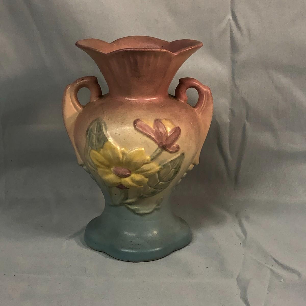 This vase is in excellent condition with no chips or cracks found. It is just over 6" tall and made by Hull between 1946-1947.