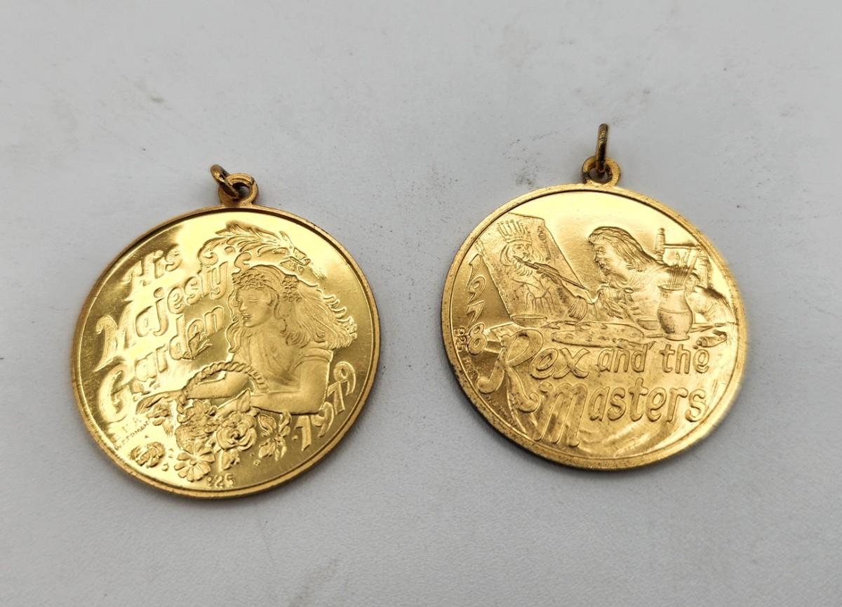 Lot #9 Lot of 2 Sterling Silver/Gold overlay REX Charms - 1978, 1979
