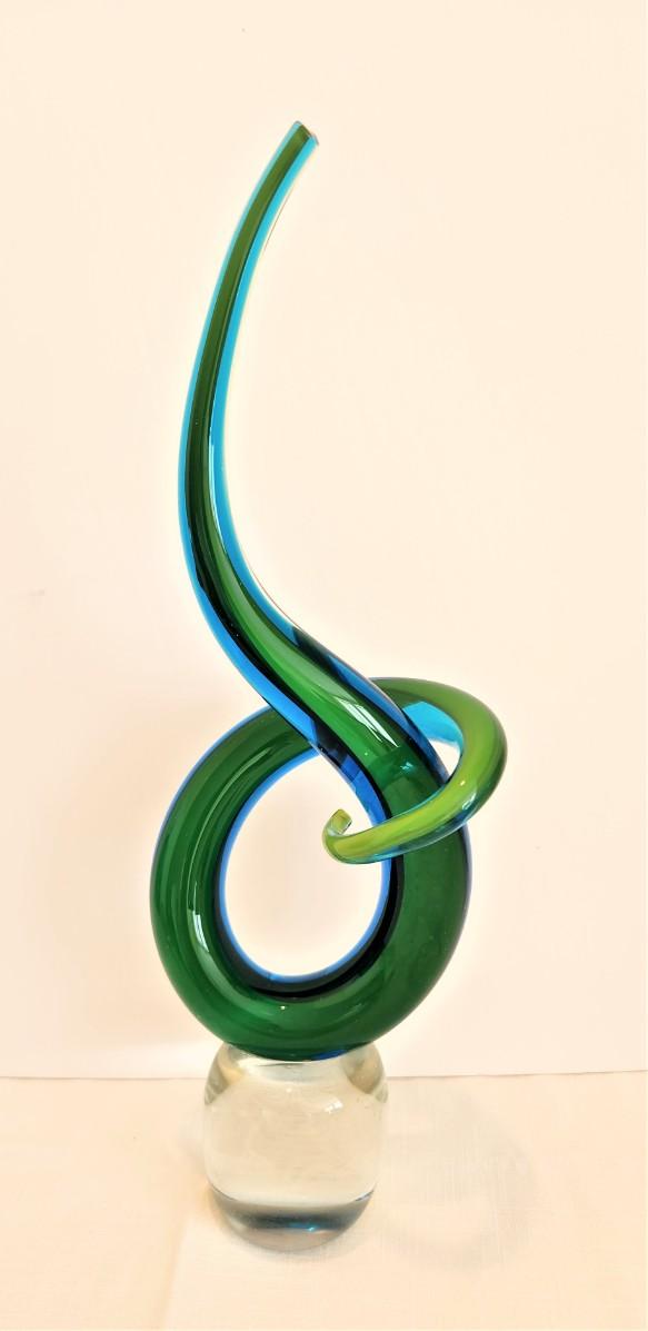 Nice mid-century art class sculpture - unsigned, aqua/green. 17" tall. Good condition.