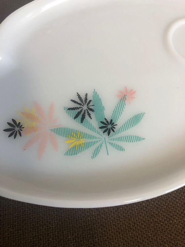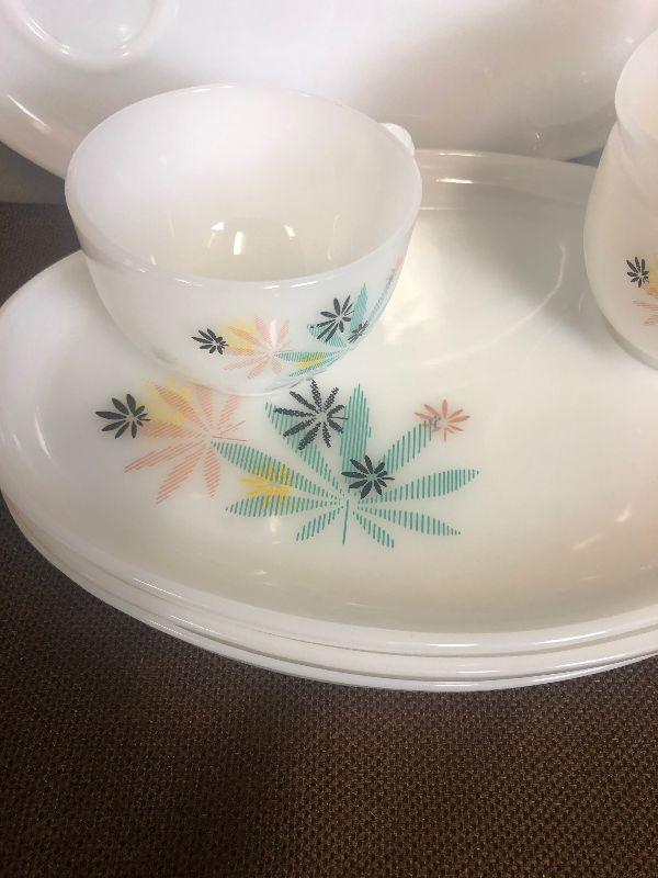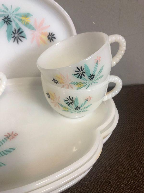Lot# 9 Milk Glass  Snack Set Leaf Pattern Anchor Hocking?