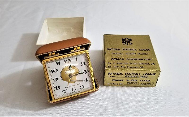 Lot #9  Rare Official 1971 Saints Football Travel Alarm Clock in Original Box - WORKS