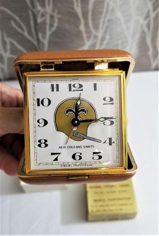 Lot #9 Rare Official 1971 Saints Football Travel Alarm Clock in Original Box - WORKS