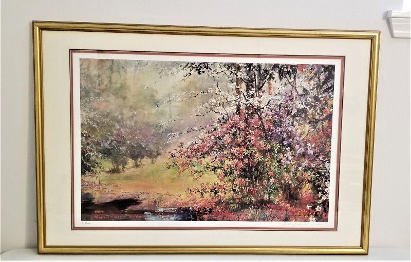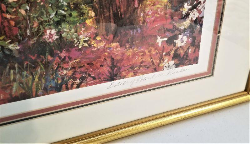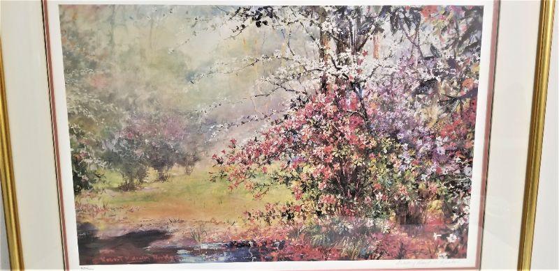 Signed/numbered limited edition print, signed "Estate of Robert Rucker" - #359/1000. Framed, triple matted. "Spring Time Meadow." Measures 37.5" x 25.5". Good condition.