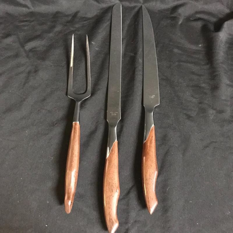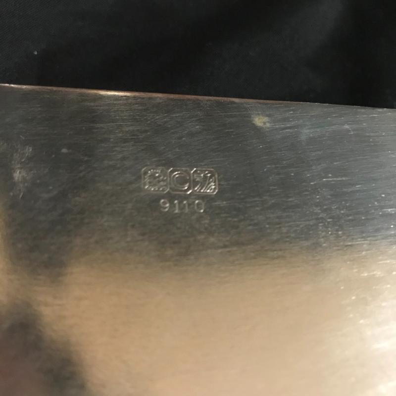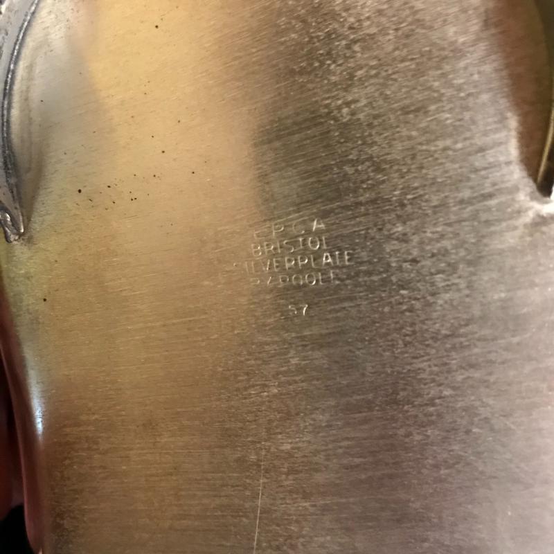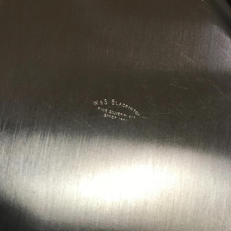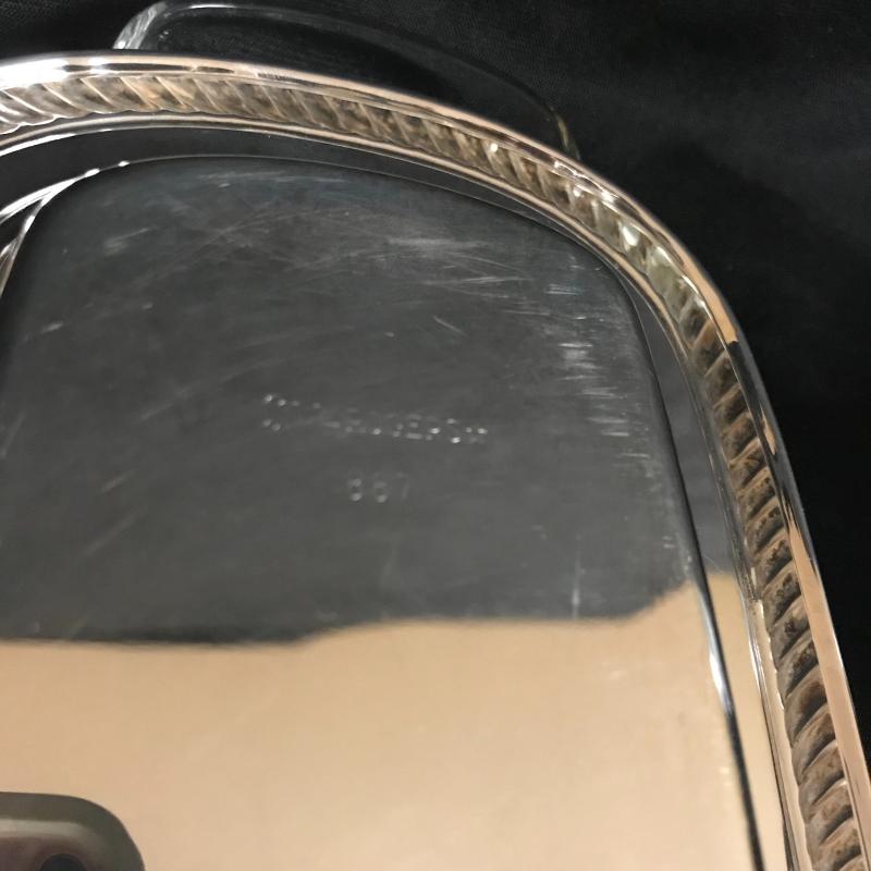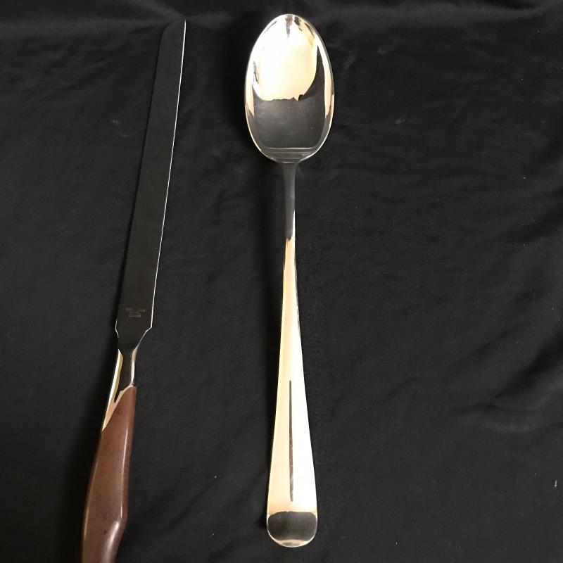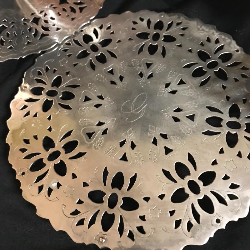 Trivets monogrammed G, large serving utensils, Sheffield Formica base tray (measures 12.5”) Three silver boats, a butter tray and lidded serving dish to complete the collection. Local pick up only.