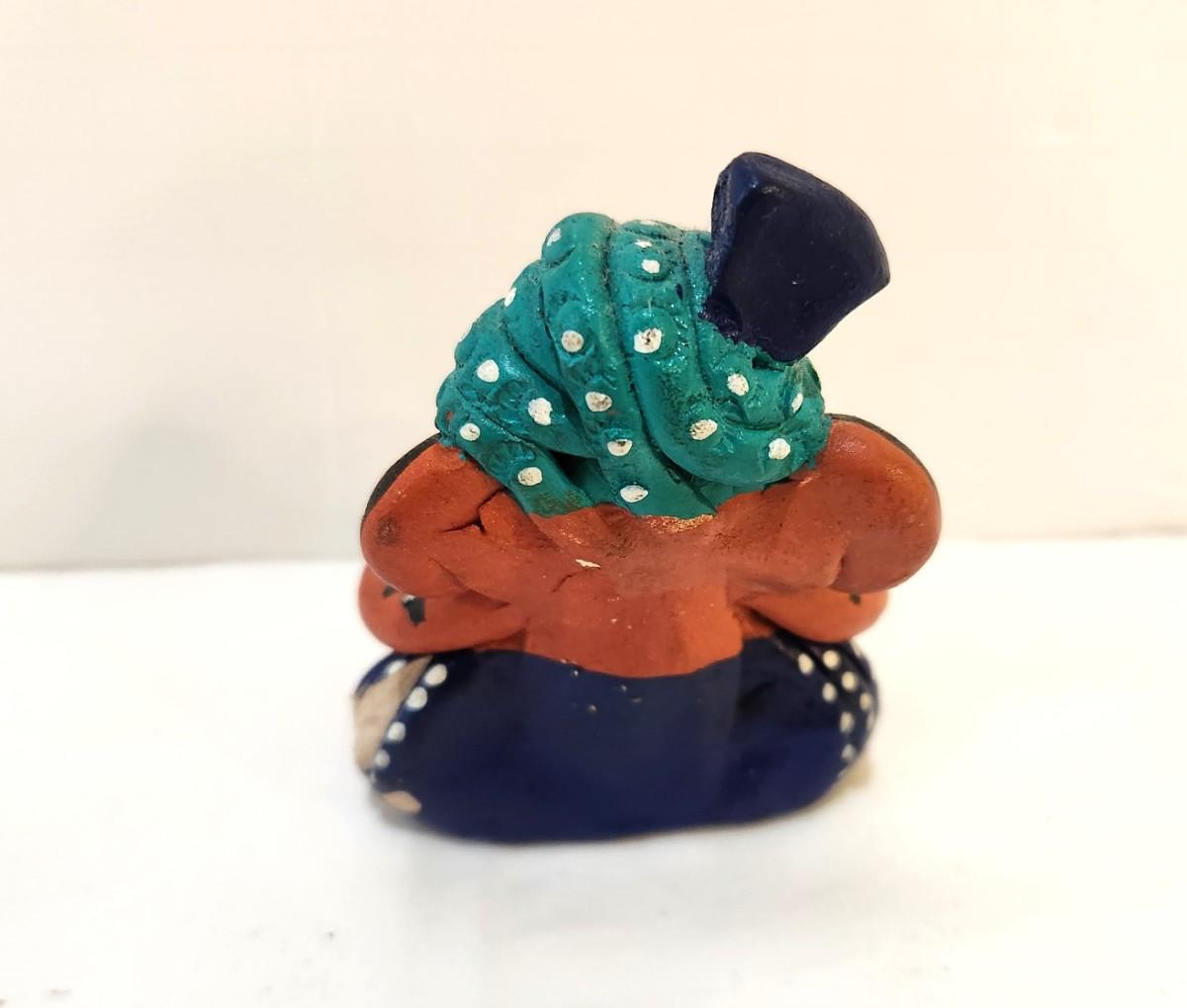 No maker noted, hand painted terra cotta, 3" tall, Hindu God GANESH playing a drum.