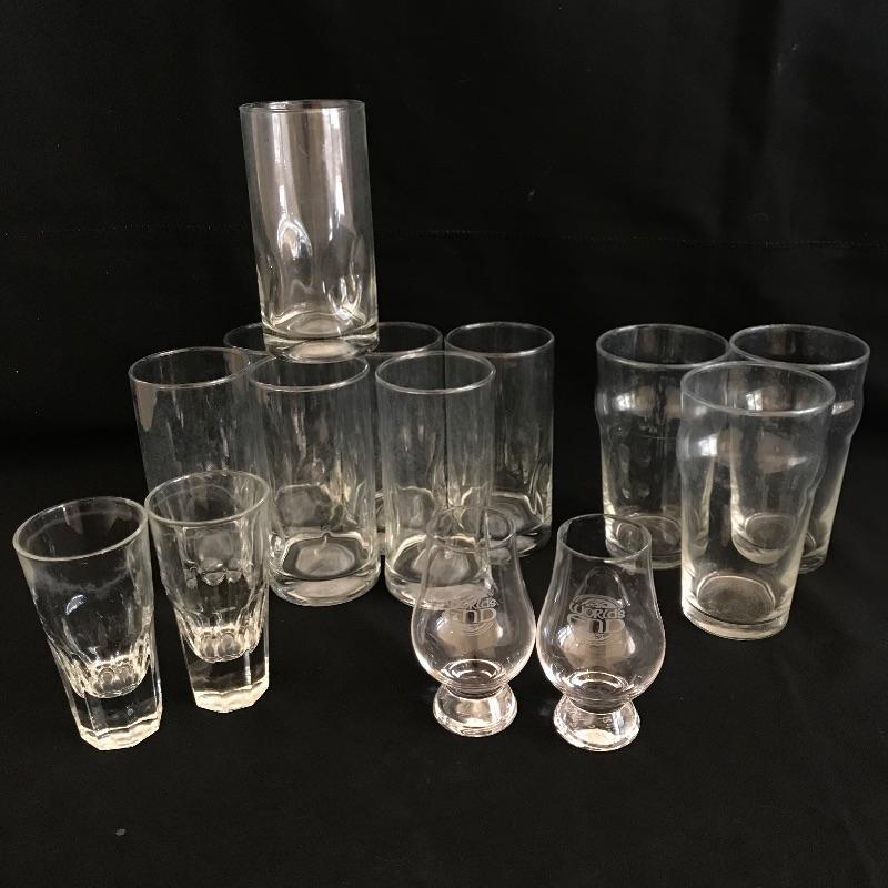Great lot for whatever your thirst craves! Two Glencairn whiskey glasses (engraved with World's End), two 5” vintage highball glasses, three pint glasses - perfect for Guinness or craft beers and seven 6” tall water glasses. See photos. No shipping.