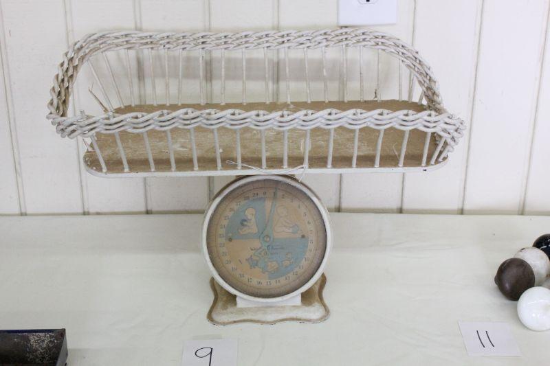 Lot 9 Vintage Baby Scale with Basket (Works)