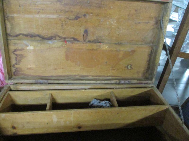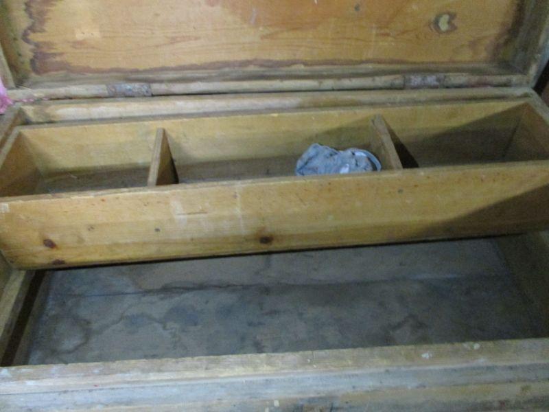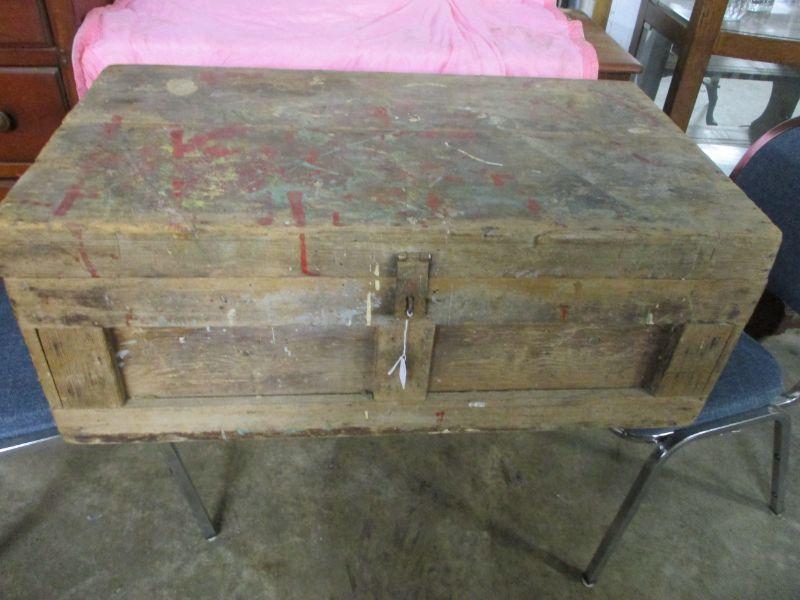Lot 9 - Antique Solid Wood Trunk with Interior Slide Tray