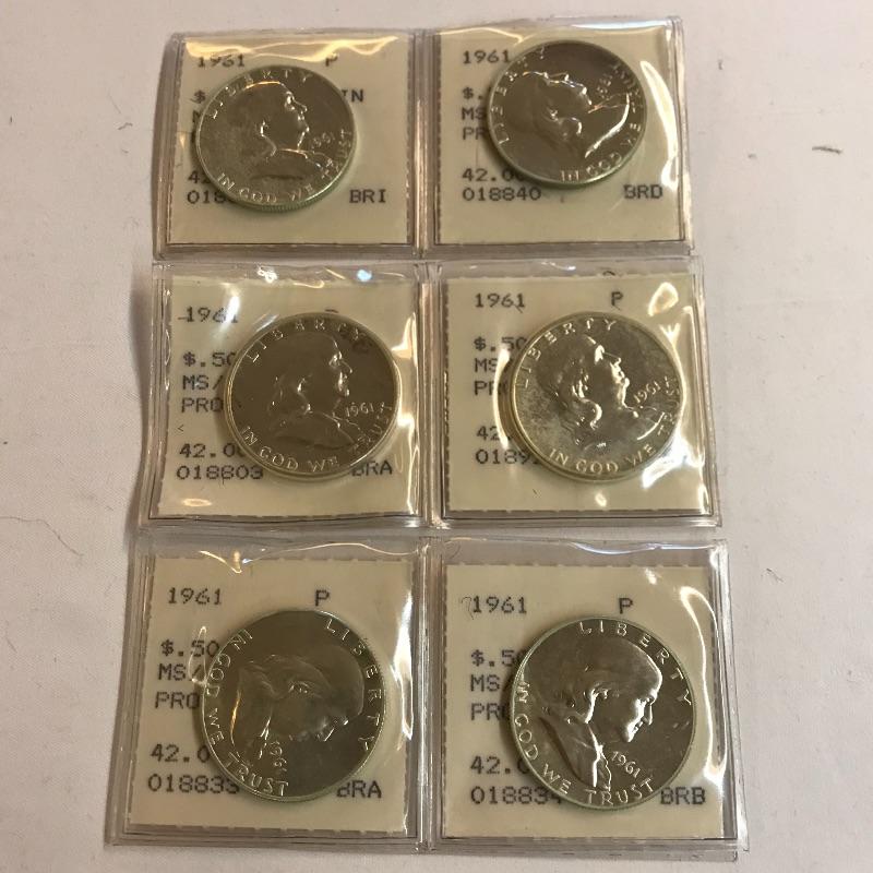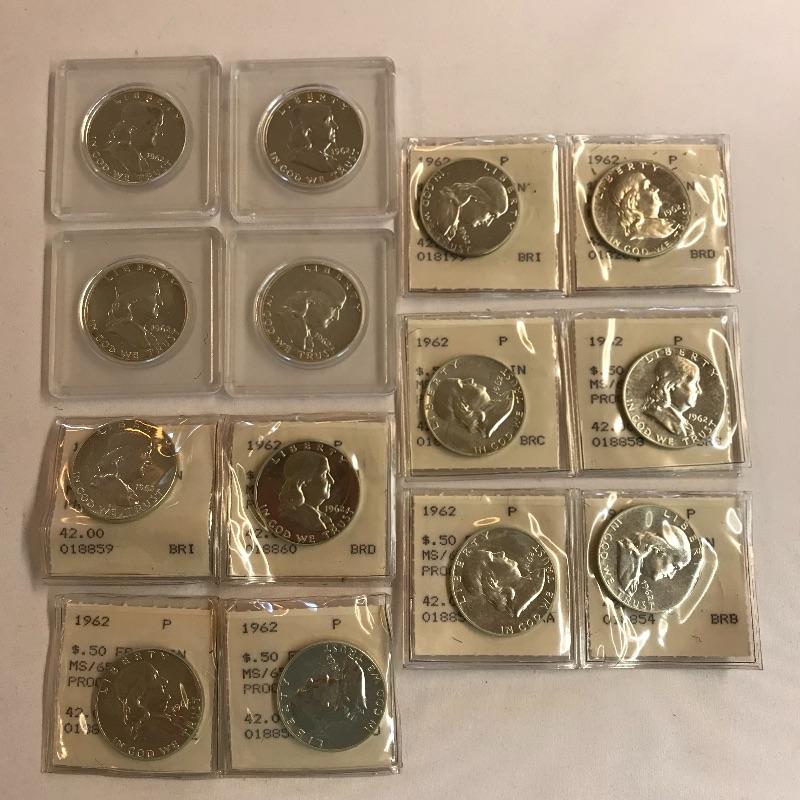 Lot 90 - 1960 to 1962 Franklin Half Dollars