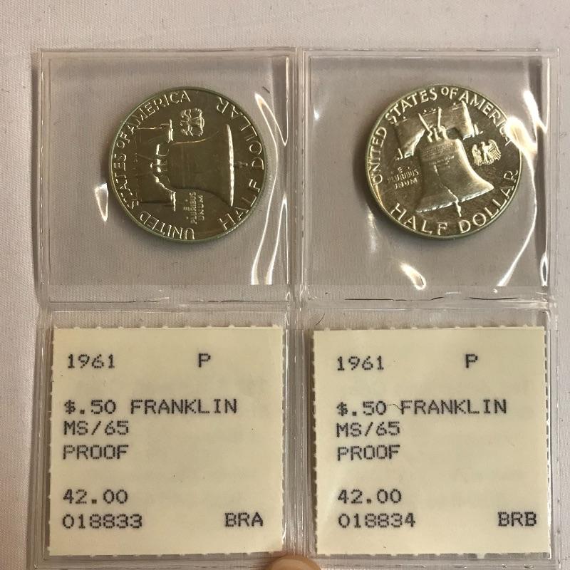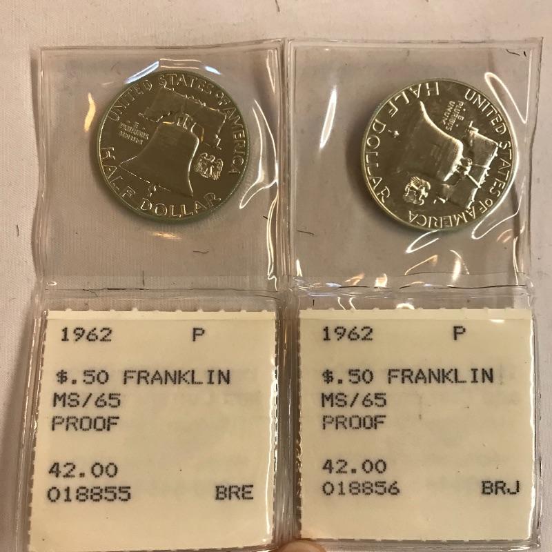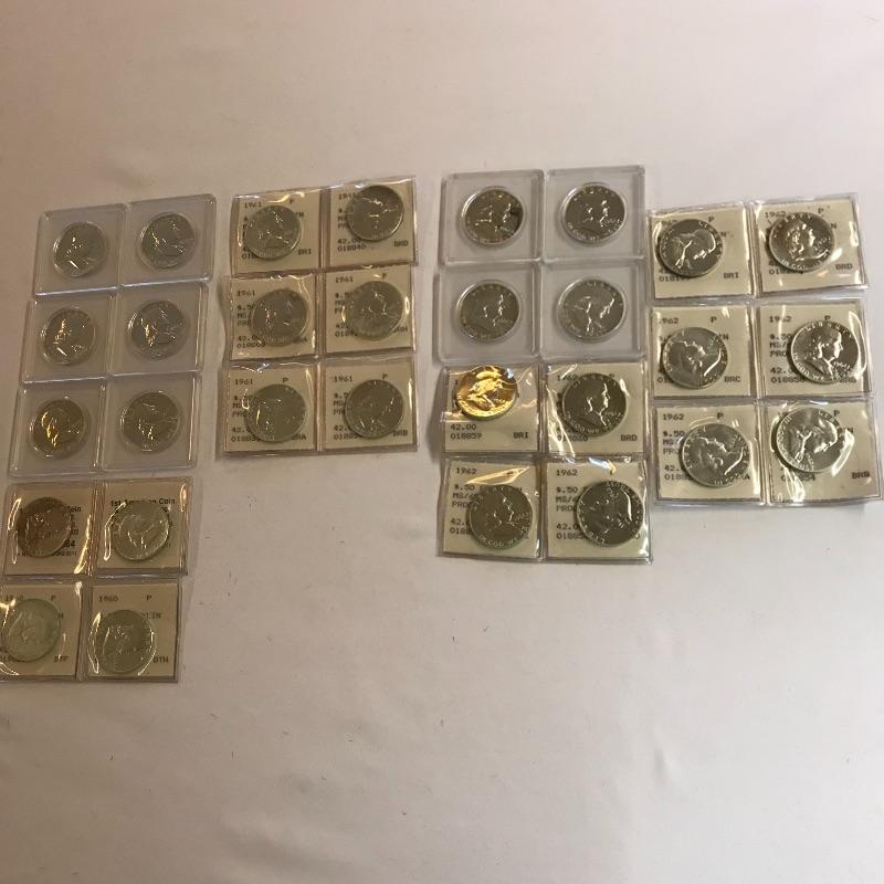 Thirty 1960 to 1962 Franklin Proof Half Dollars. Ten 1960, six 1961, and fourteen 1962.