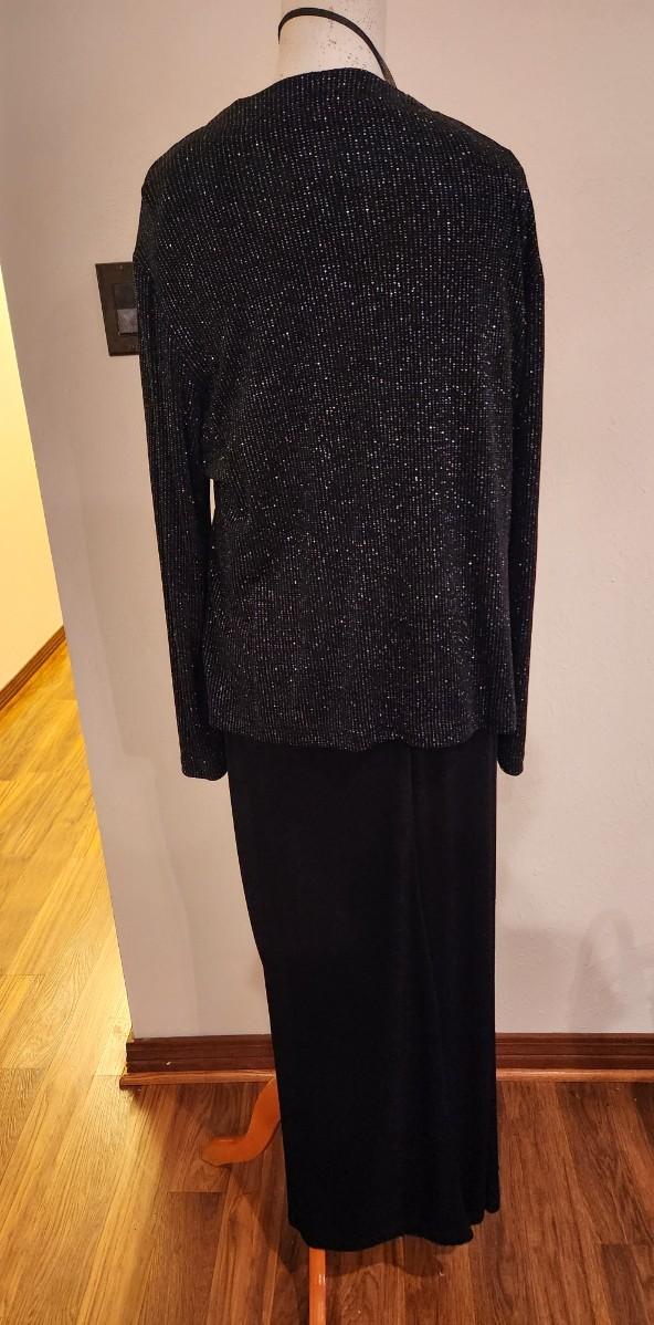 Perfect for Holiday parties or Mardi Gras Balls - Ronnie Nichol 2 piece formal black gown (dress and jacket) - size 16. Hand wash in cold water. Good condition.