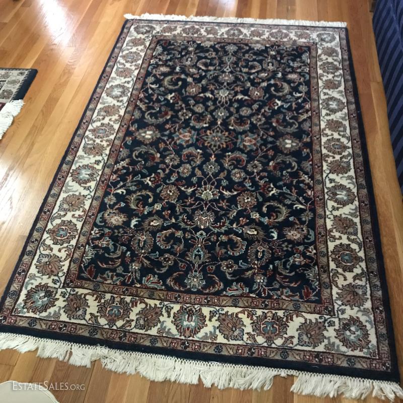 Navy Rug. Colors may not be conveyed in photos. Measures 78"l x 48"w with fringe. Shipping available or local pick up in Asheville, NC.