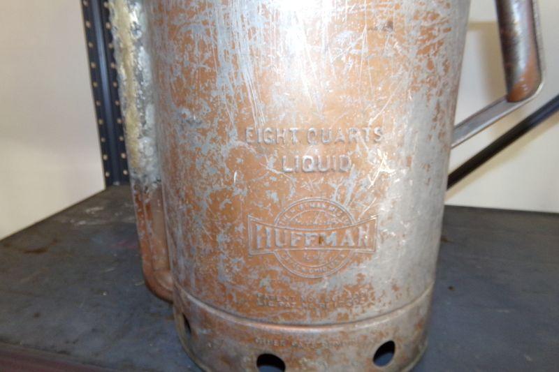 VINTAGE METAL HUFFMAN GAS STATION 8 QUART OIL CAN WITH SWING SPOUT