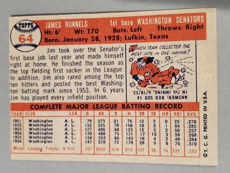 Lot 90: Washington Senators - Pete Runnels Baseball Card