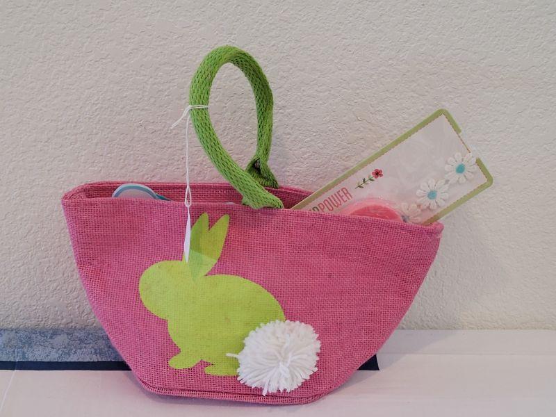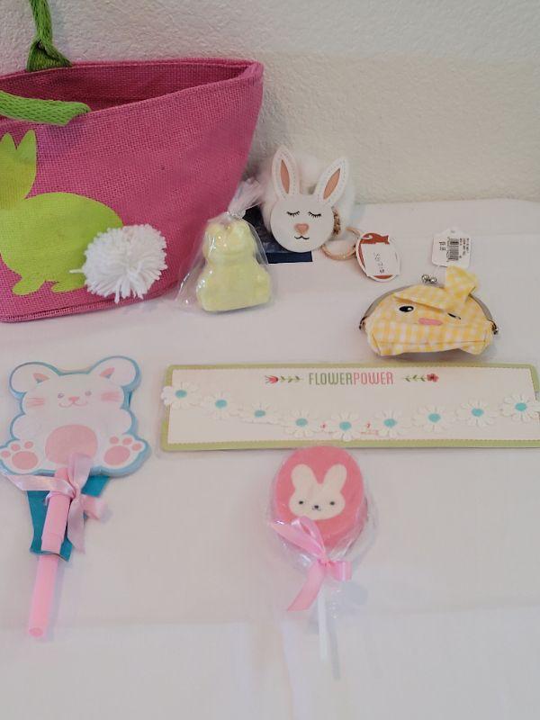Lot 90: New Easter Purse Basket with Handsoap Lollipop, Headband, Coin Purse,  Memo & Pen, Bath Fizzie and Bunny Keychain