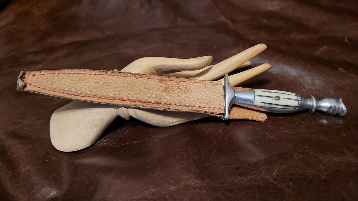 Lot 90: Vintage Handcrafted Made in Mexico Boot or Belt Dagger Knife w/ Leather Sheath