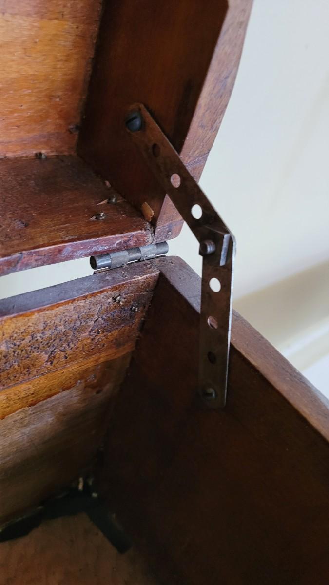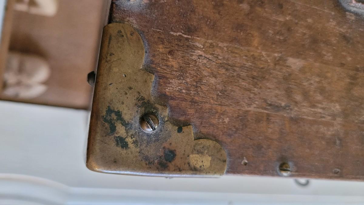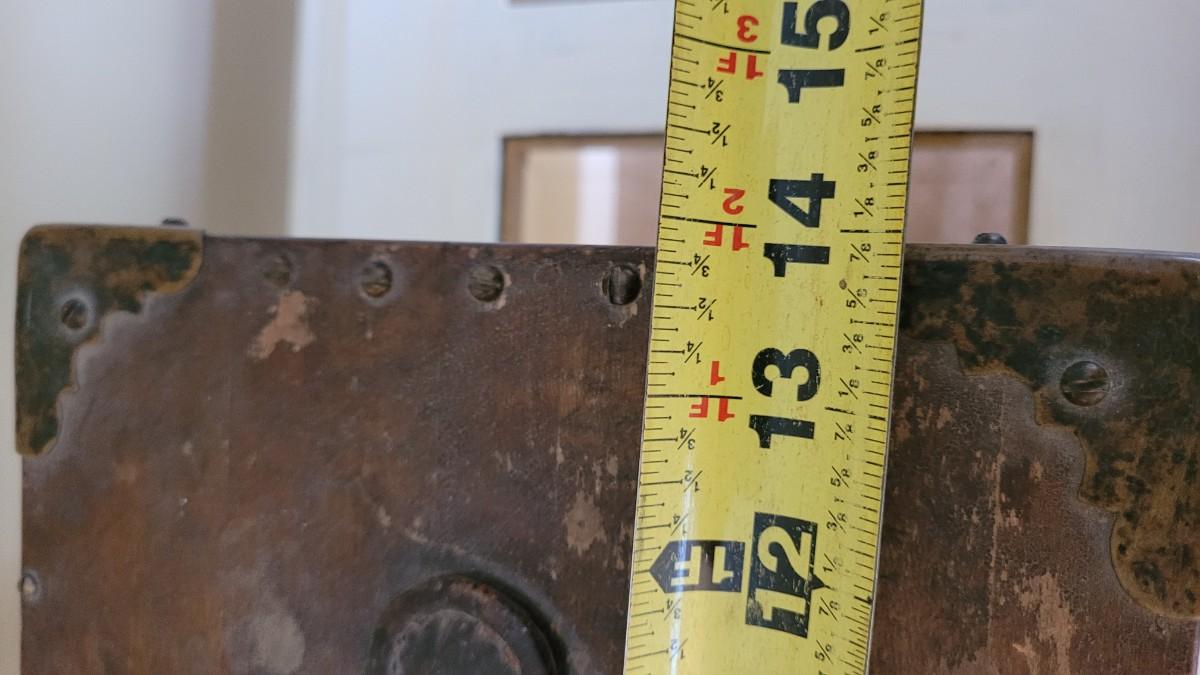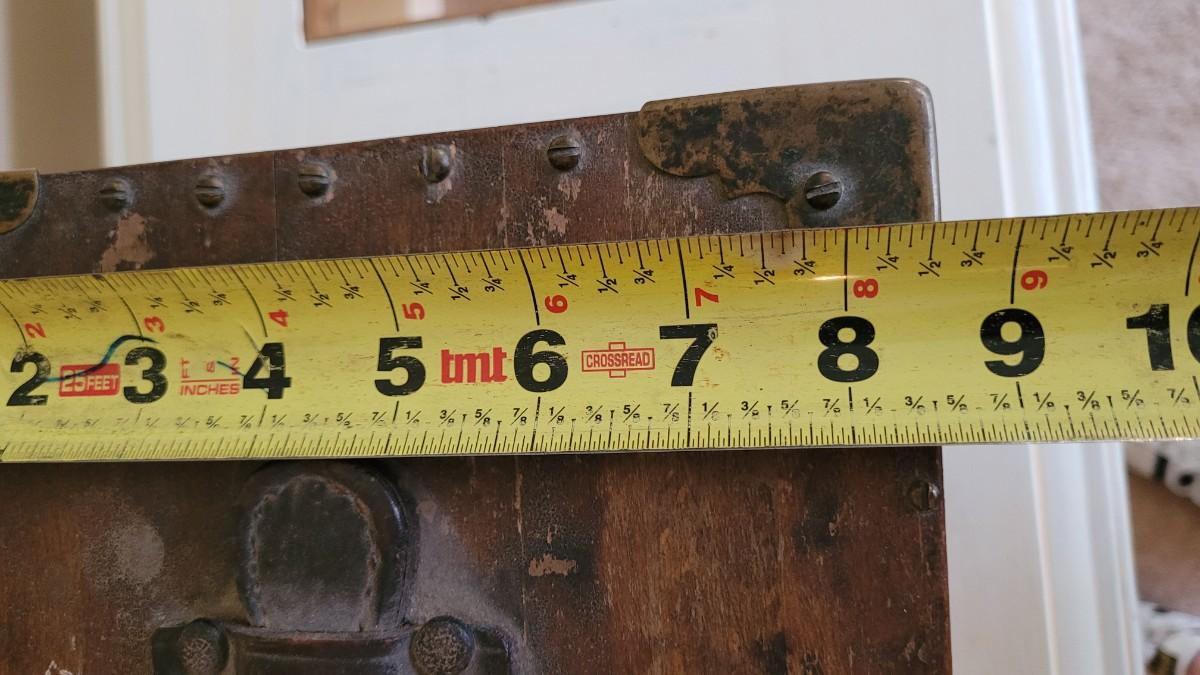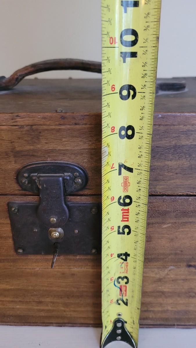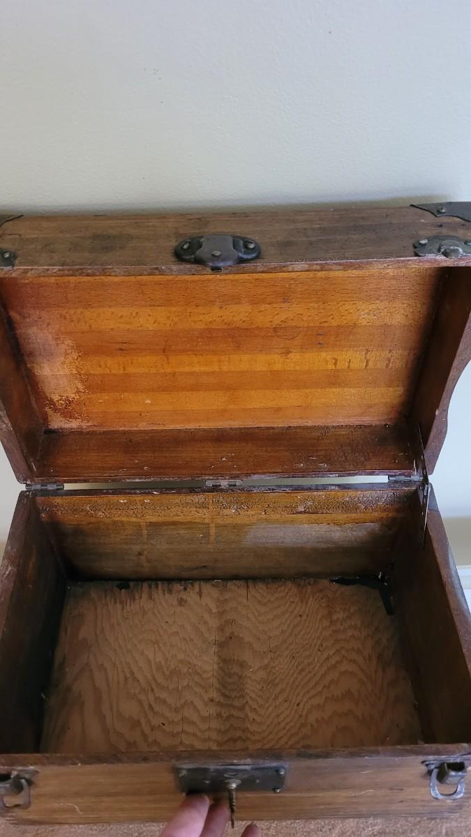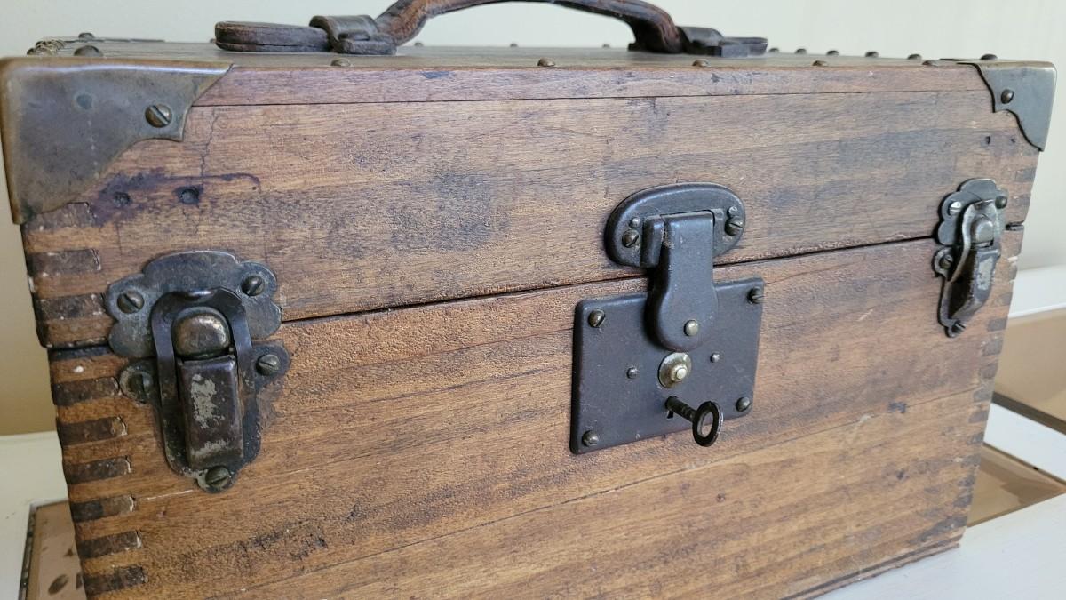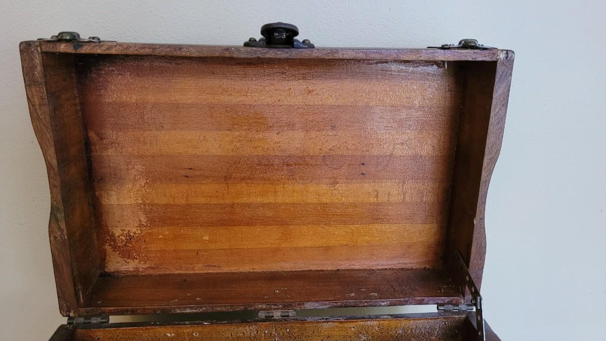 Lot 90: Antique Wood Chest with Leather Handle & Beautiful Metal Hardware