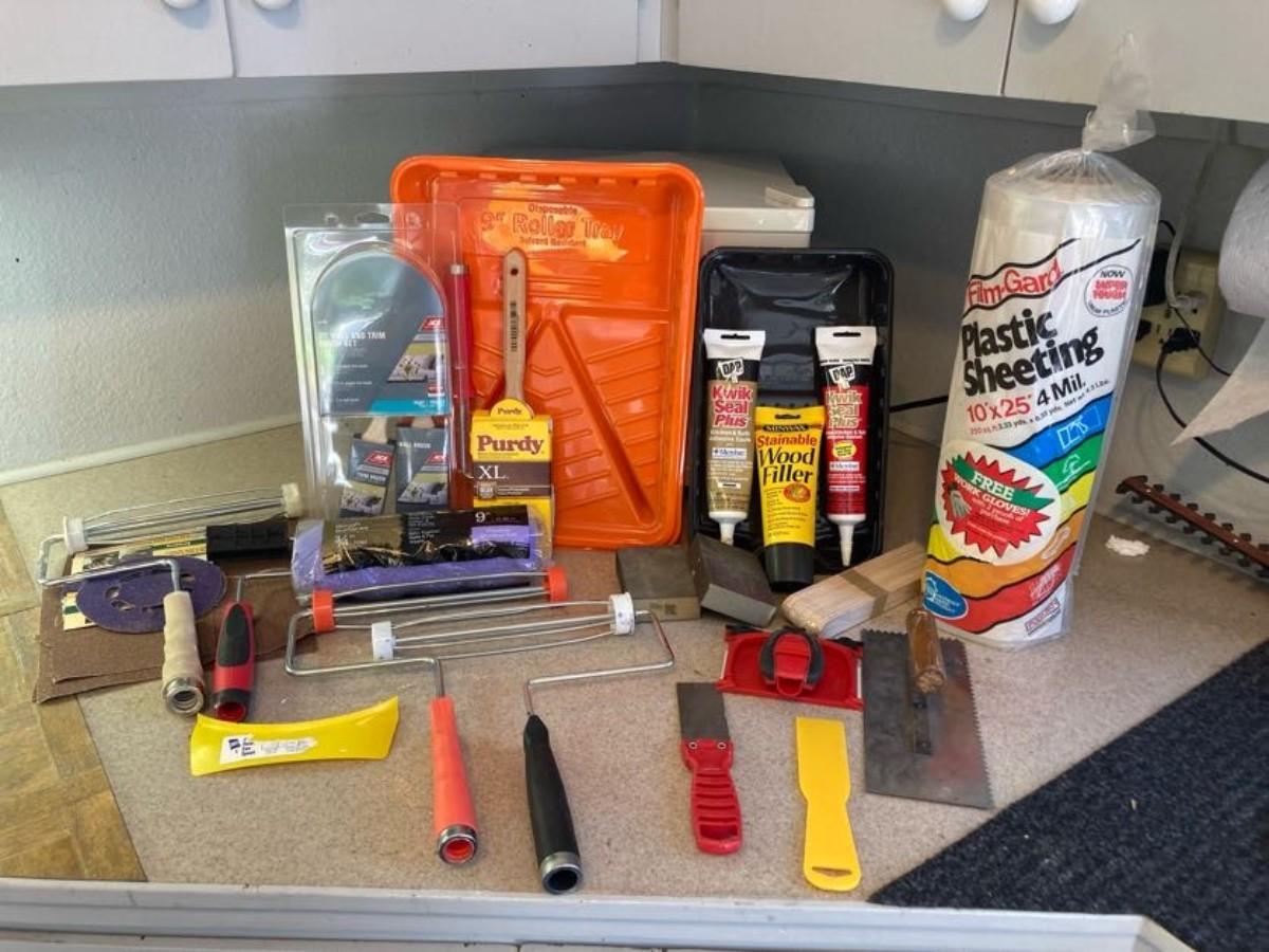 LOT 90 PAINTING TOOLS AND SUPPLIES