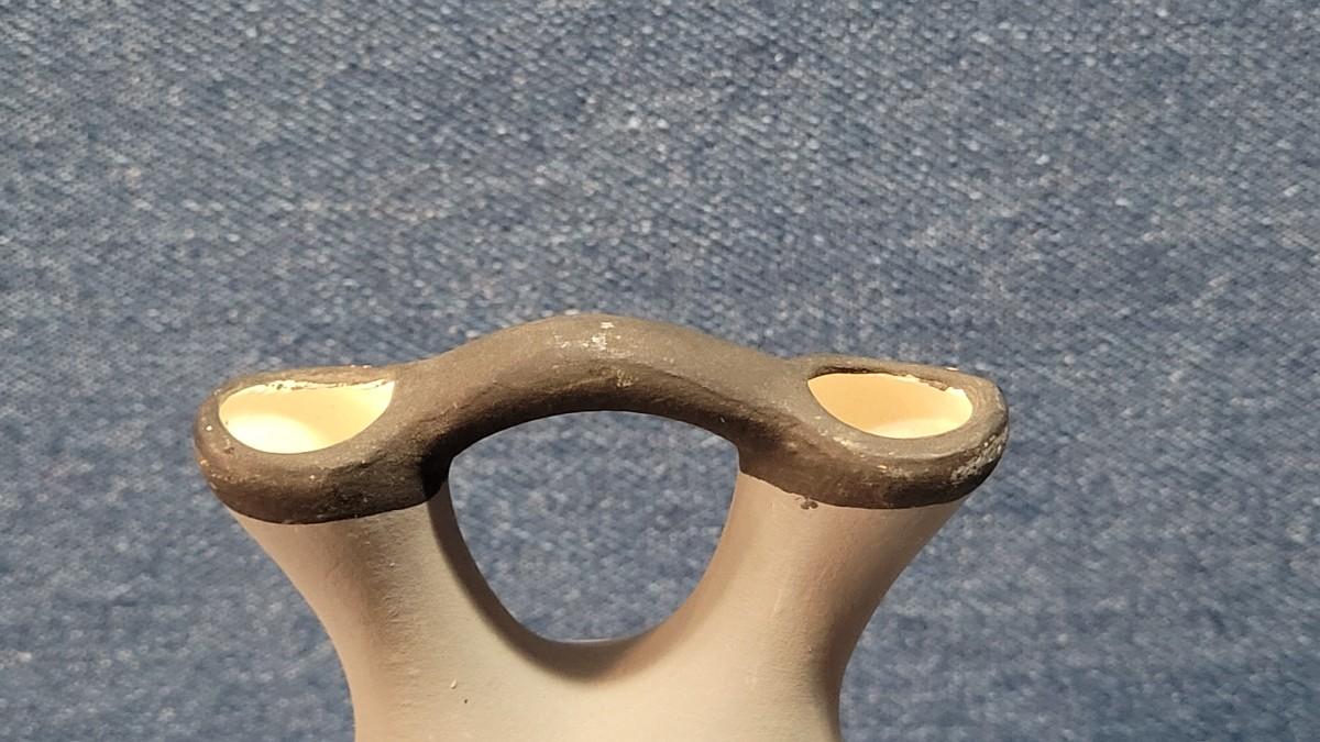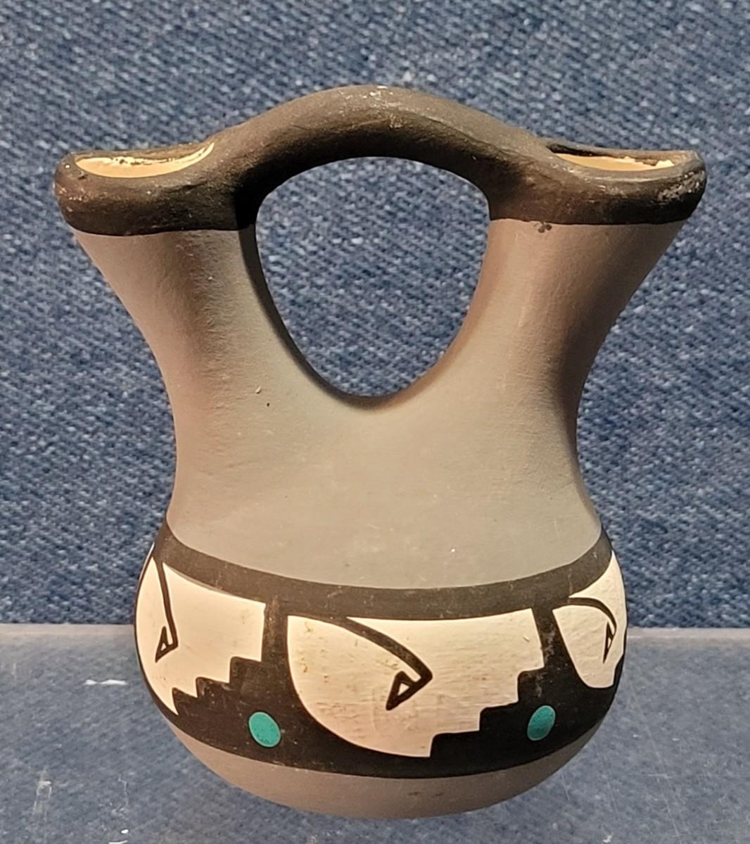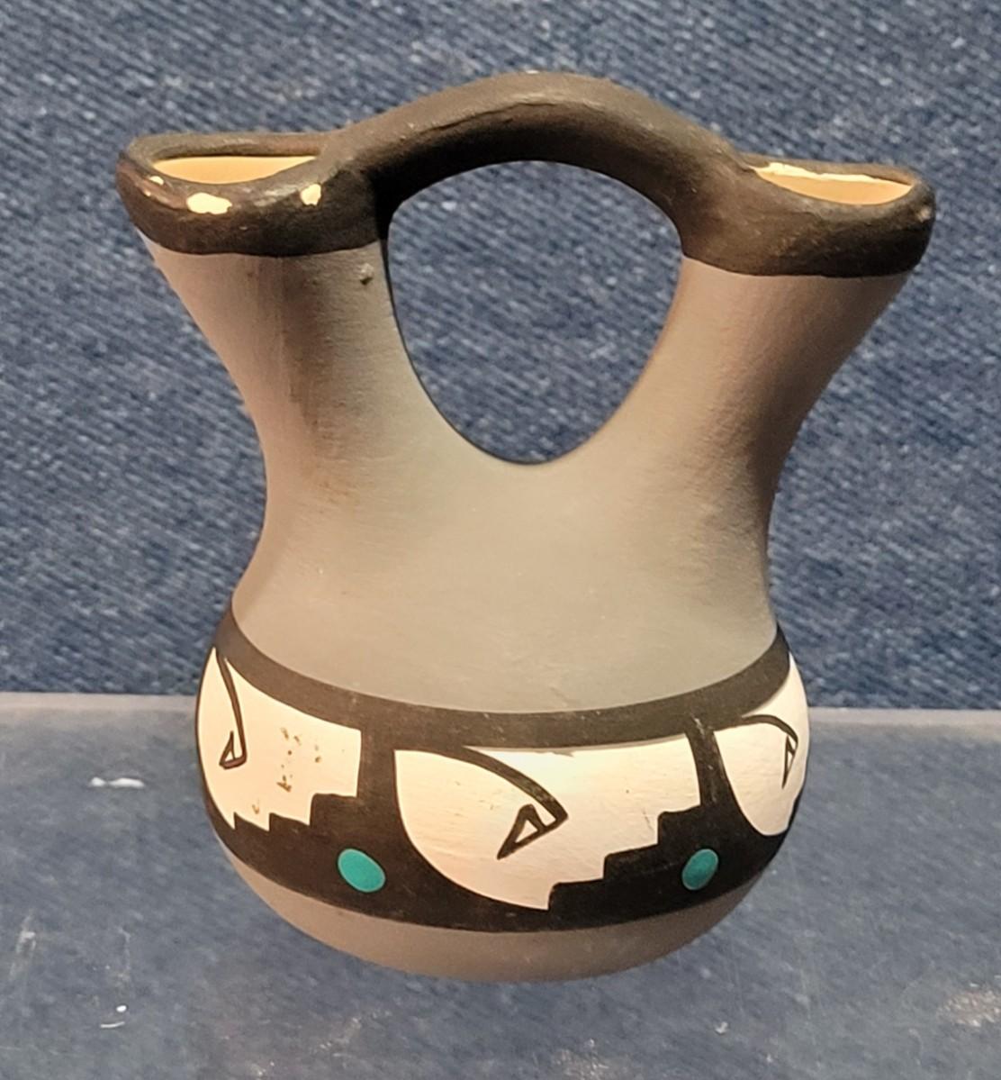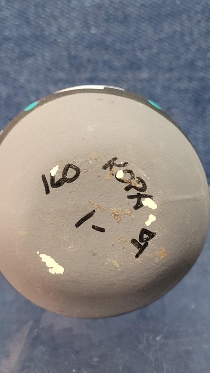 Marked on the bottom. Colors are gray, black, white and Turquoise