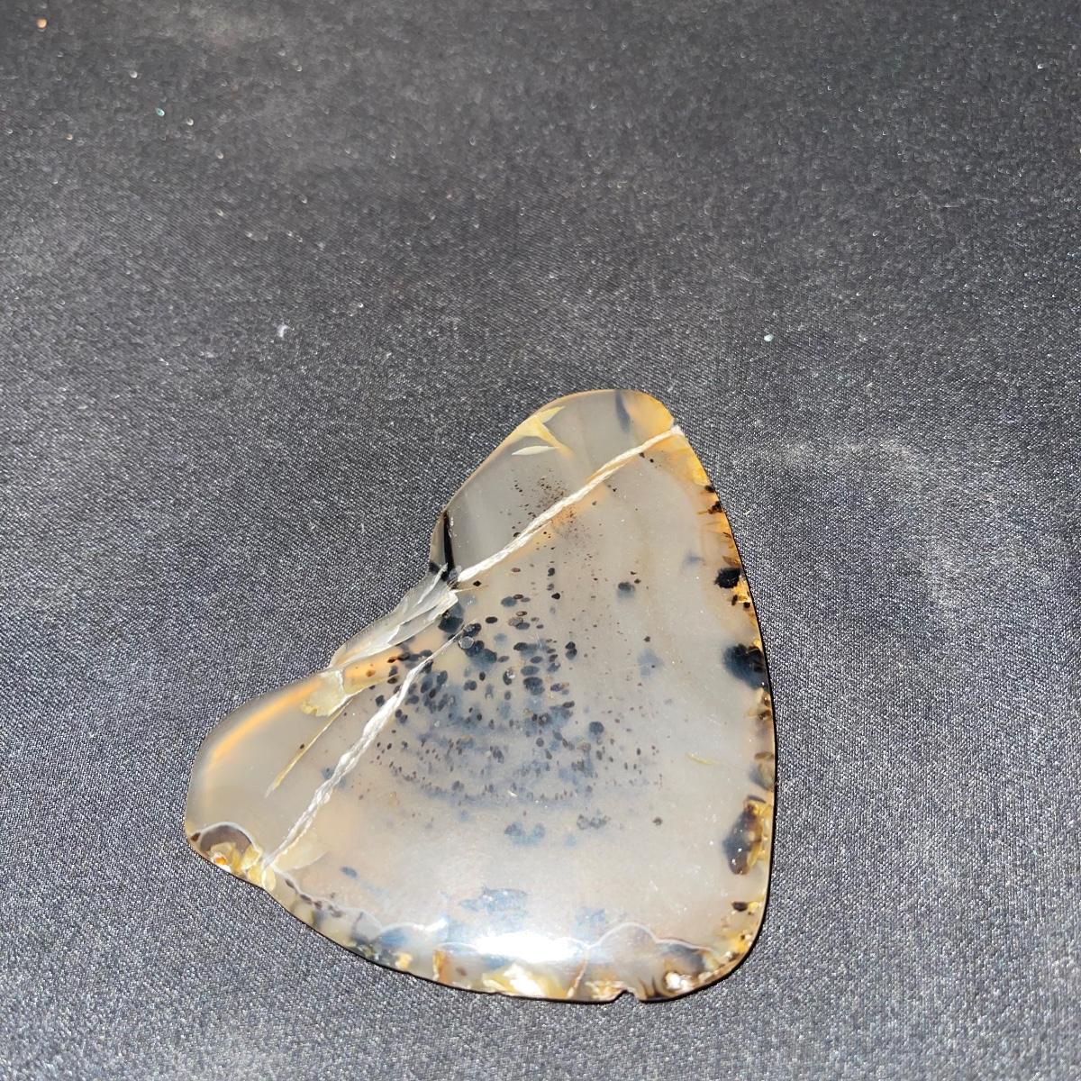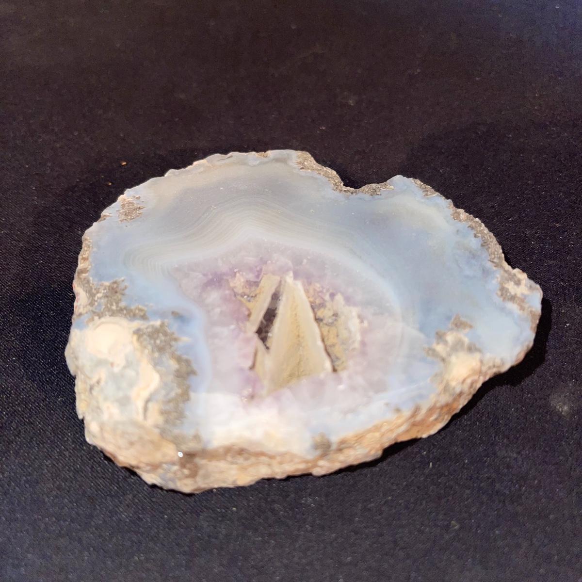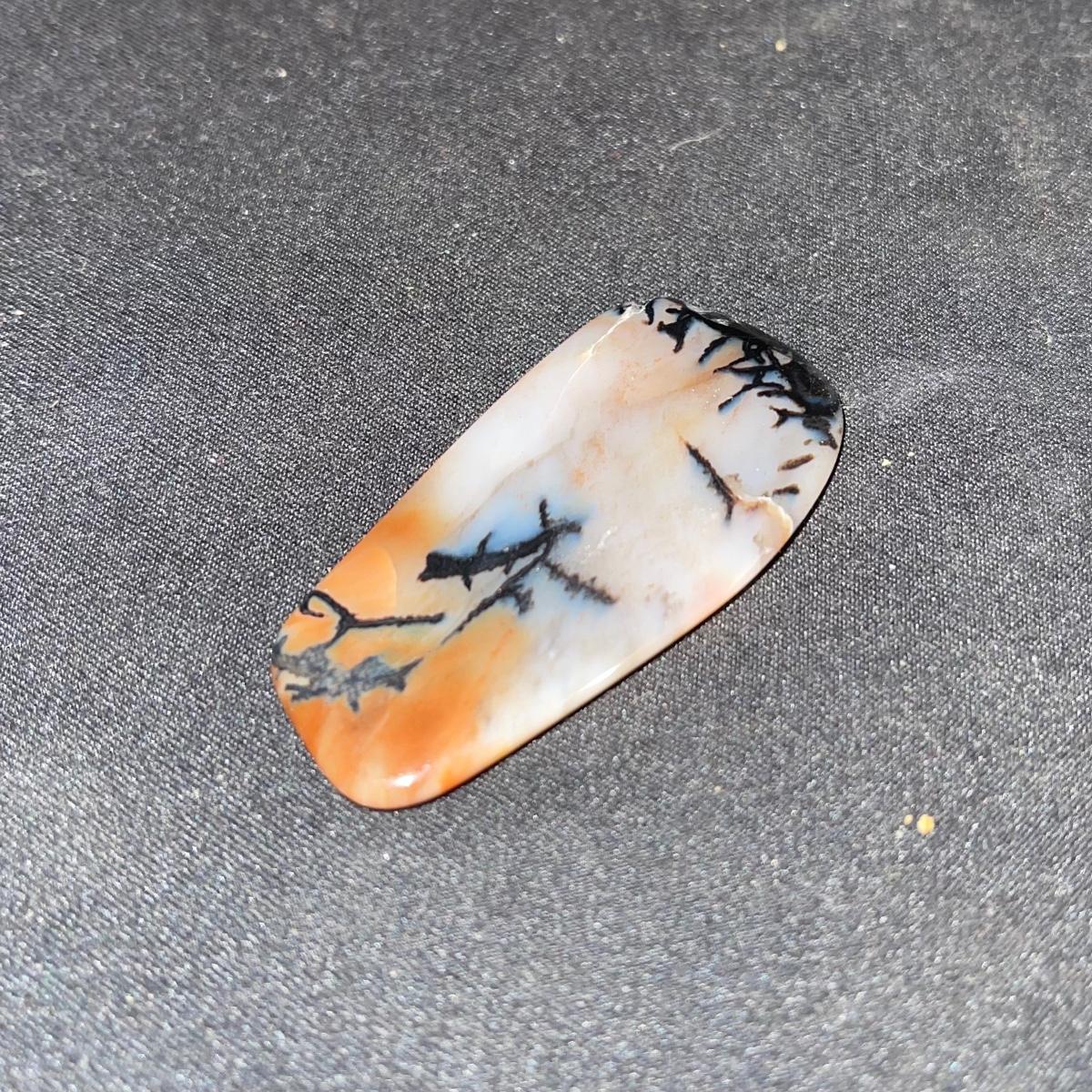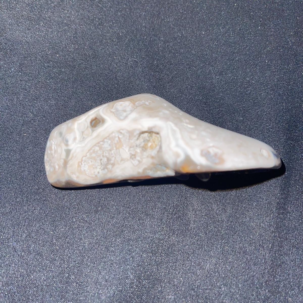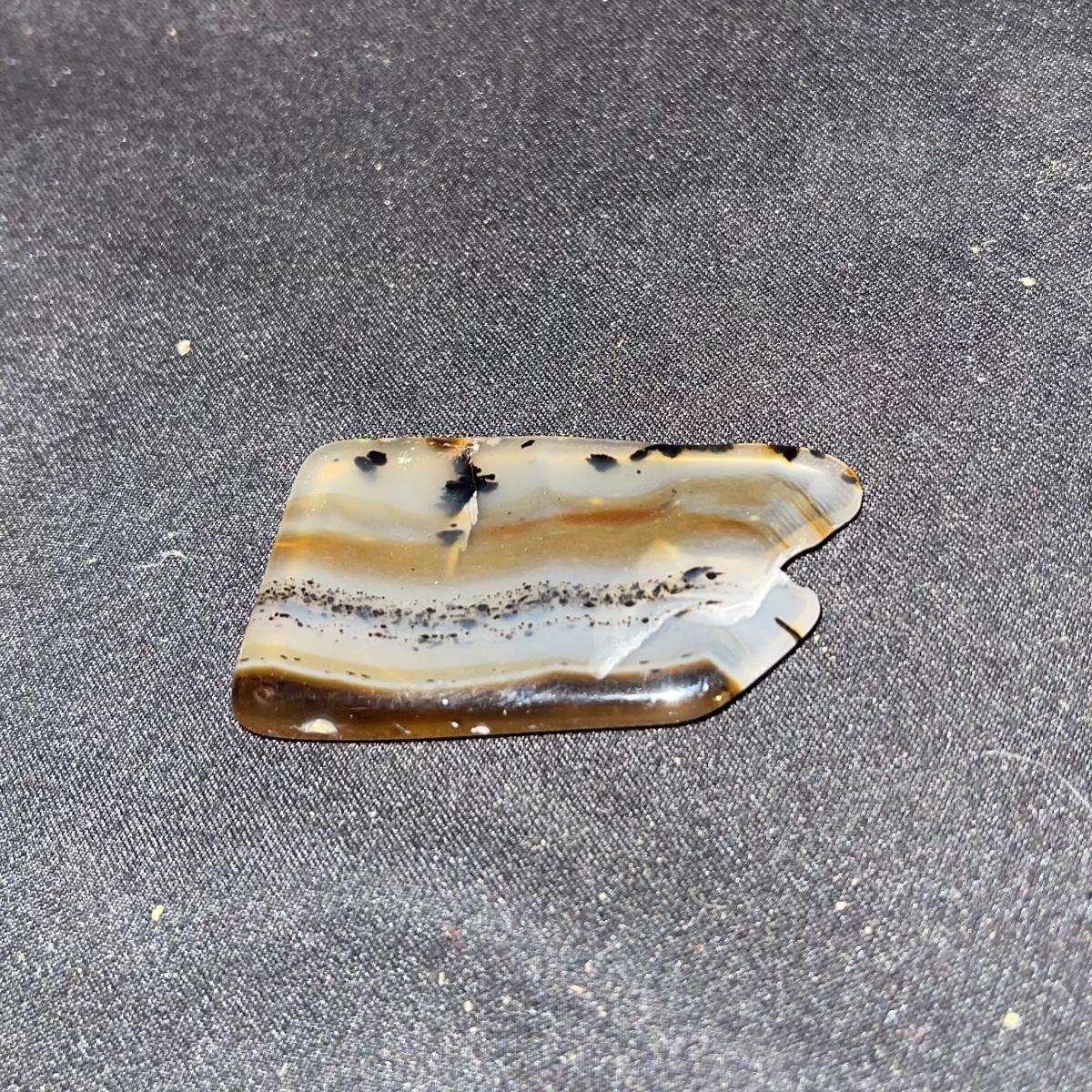 The majority of agate pieces in this lot are in the orange, red, brown,and white spectrums of color. There are some pieces with some blues and other hues, notably, a circular dark blue flat