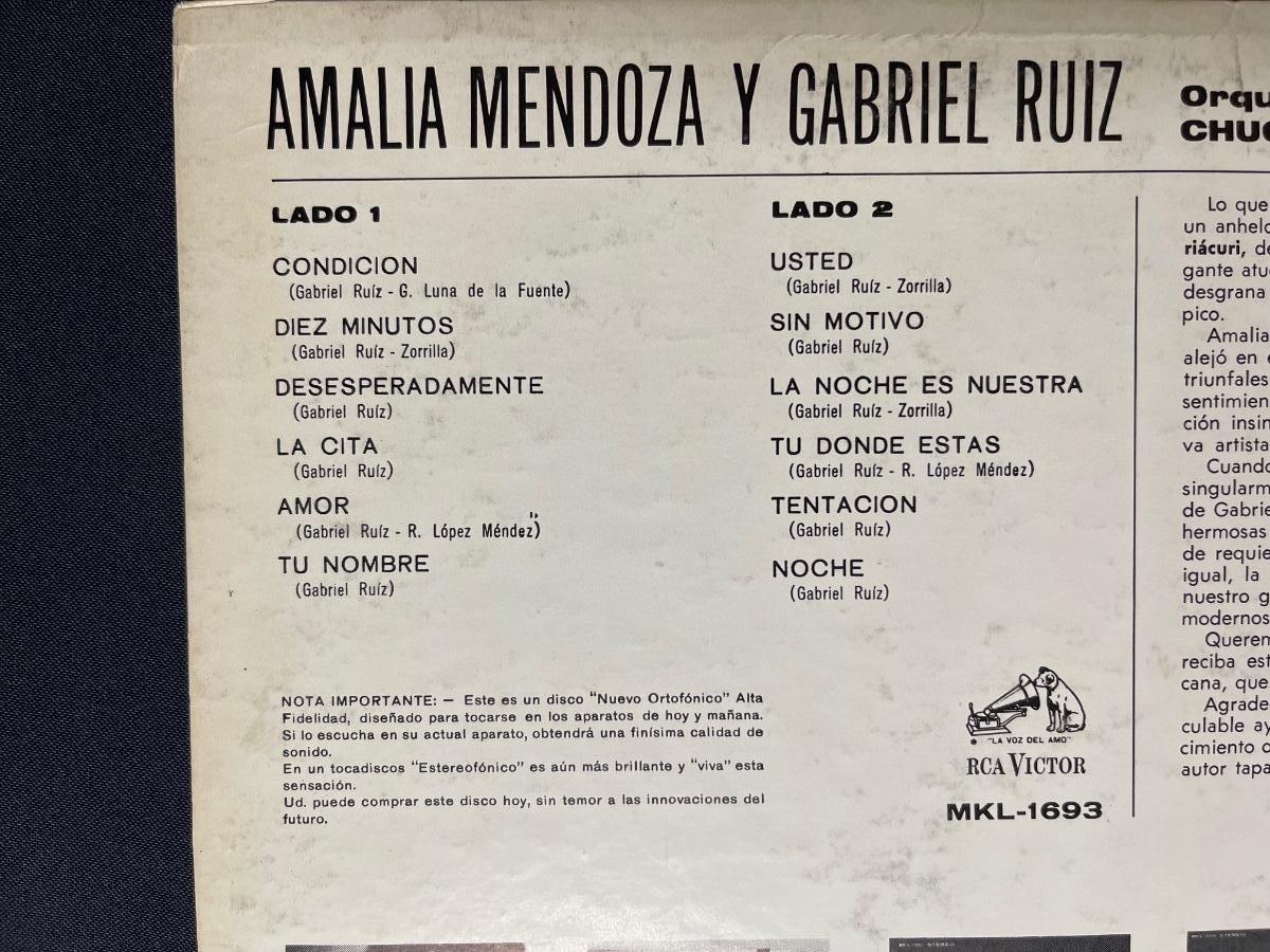 LOT 90: AMALIA MENDOZA Y GABRIEL RUIZ - SELF TITLED ALBUM - 1963 VINYL