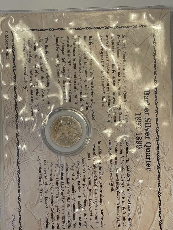 America’s rare 19th century coins barber silver quarter 1899 .900 silver, America’s rare 19th century coins Indianhead cent 1899 .950 copper.