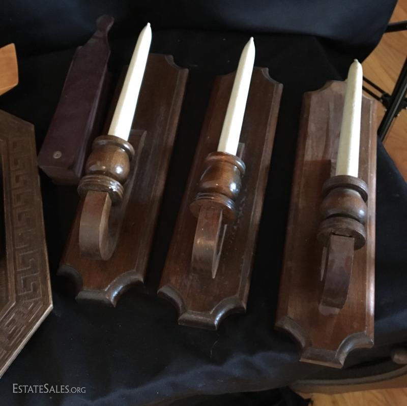 Three Wood Candle Holders with Wooden Candles