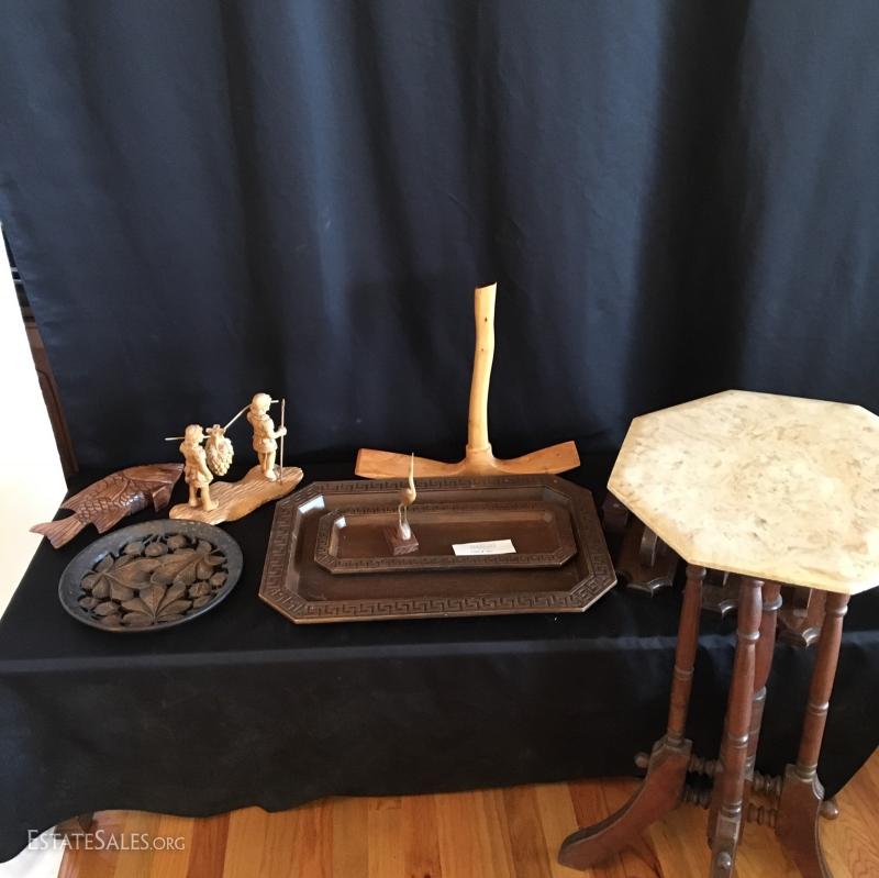 LOt 90- Faux Marble Fern Table and Miscellaneous Collectibles