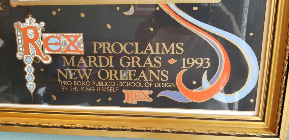 Just gorgeous. Framed 1993 REX proclamation - number 789/5000 limited edition - measures 29.5" tall x 21.5" wide. Great condition.
