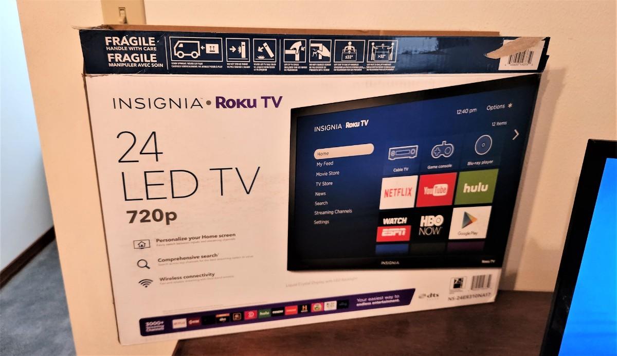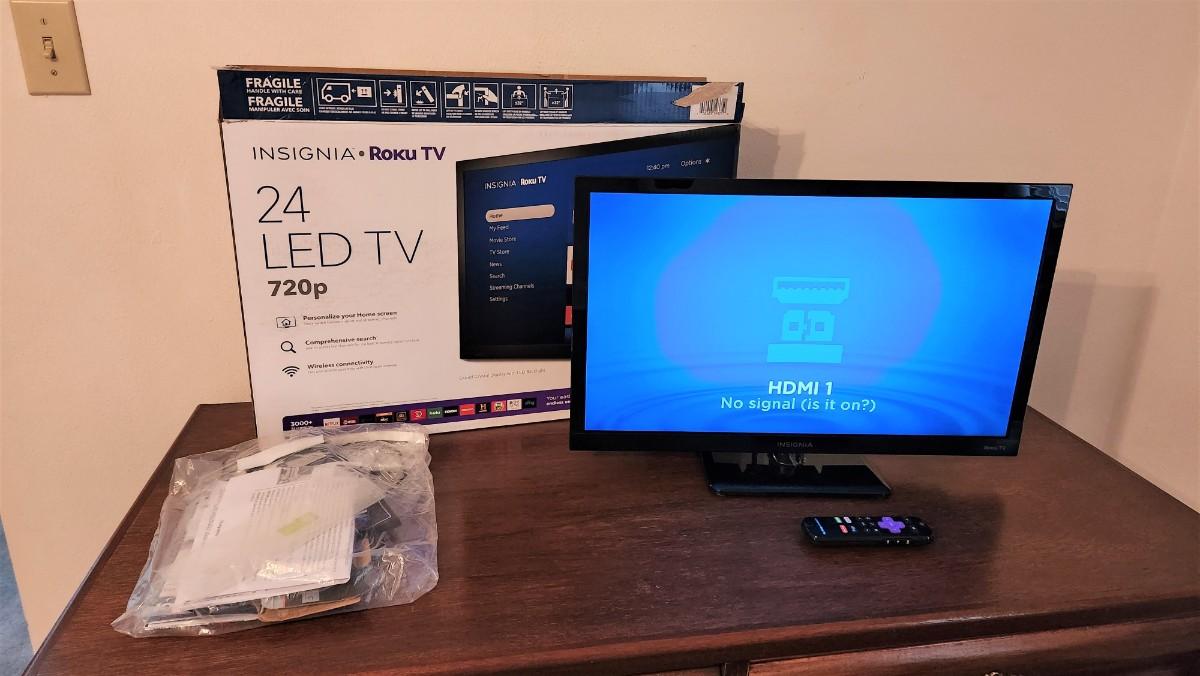 We took this out of the box - seems to have never been used - has book, remote, cords, etc. Insignia 24" Roku tv - good working condition. Model NS-24ER310NA17