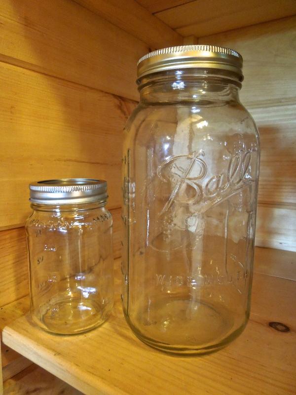 19 jars, mostly quart size with lids. One larger jar. Very clean. Rack not included.